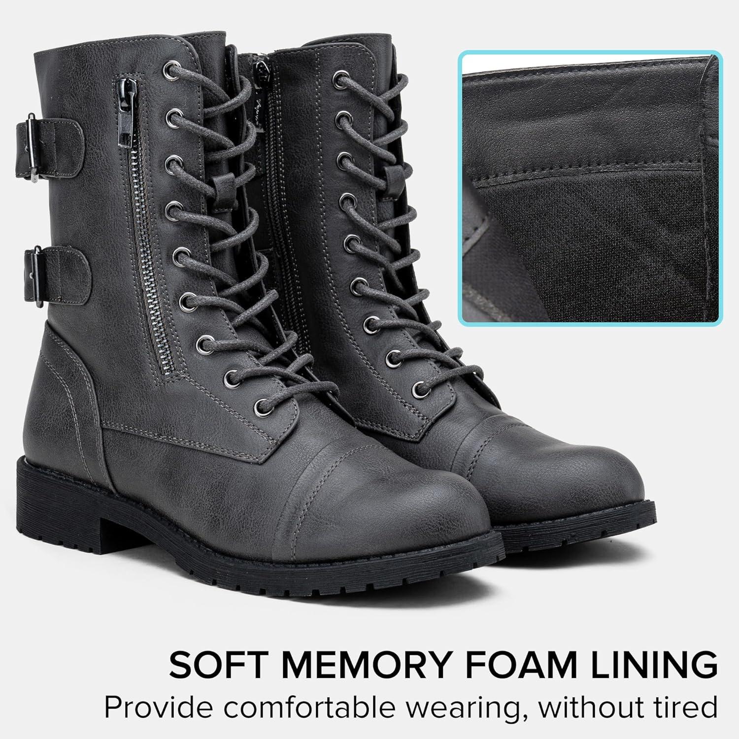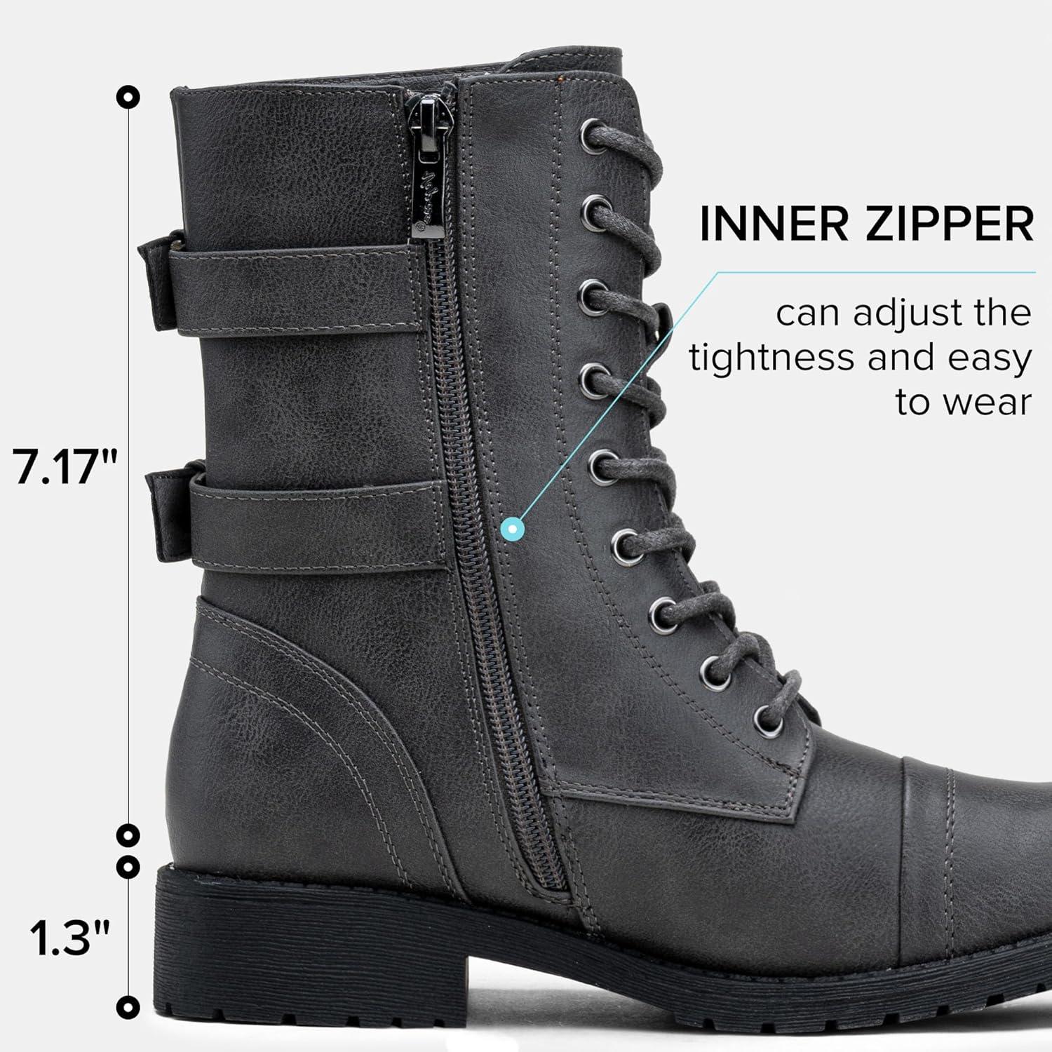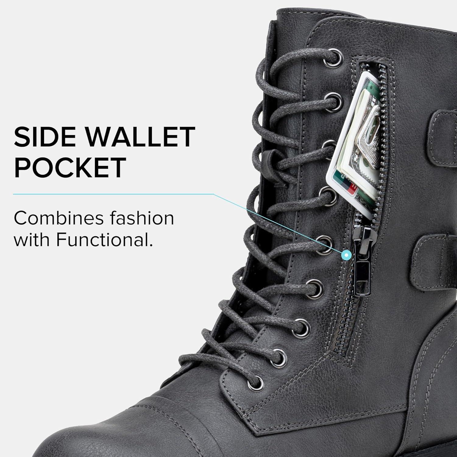 Vepose Women’s 928 Combat Boots Low Heel, Mid Calf Military Boots with Card Knife Wallet Pocket(High Combat-929-grey)