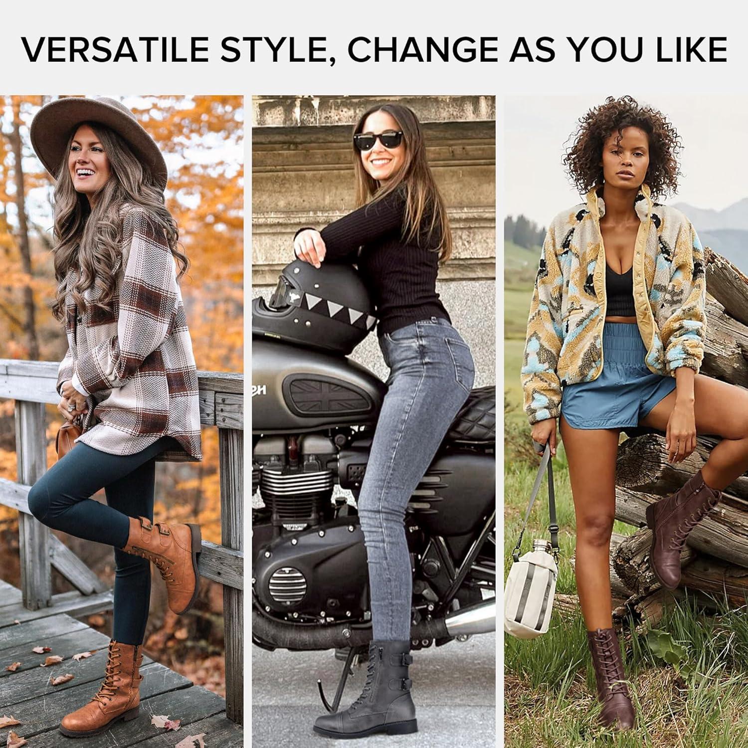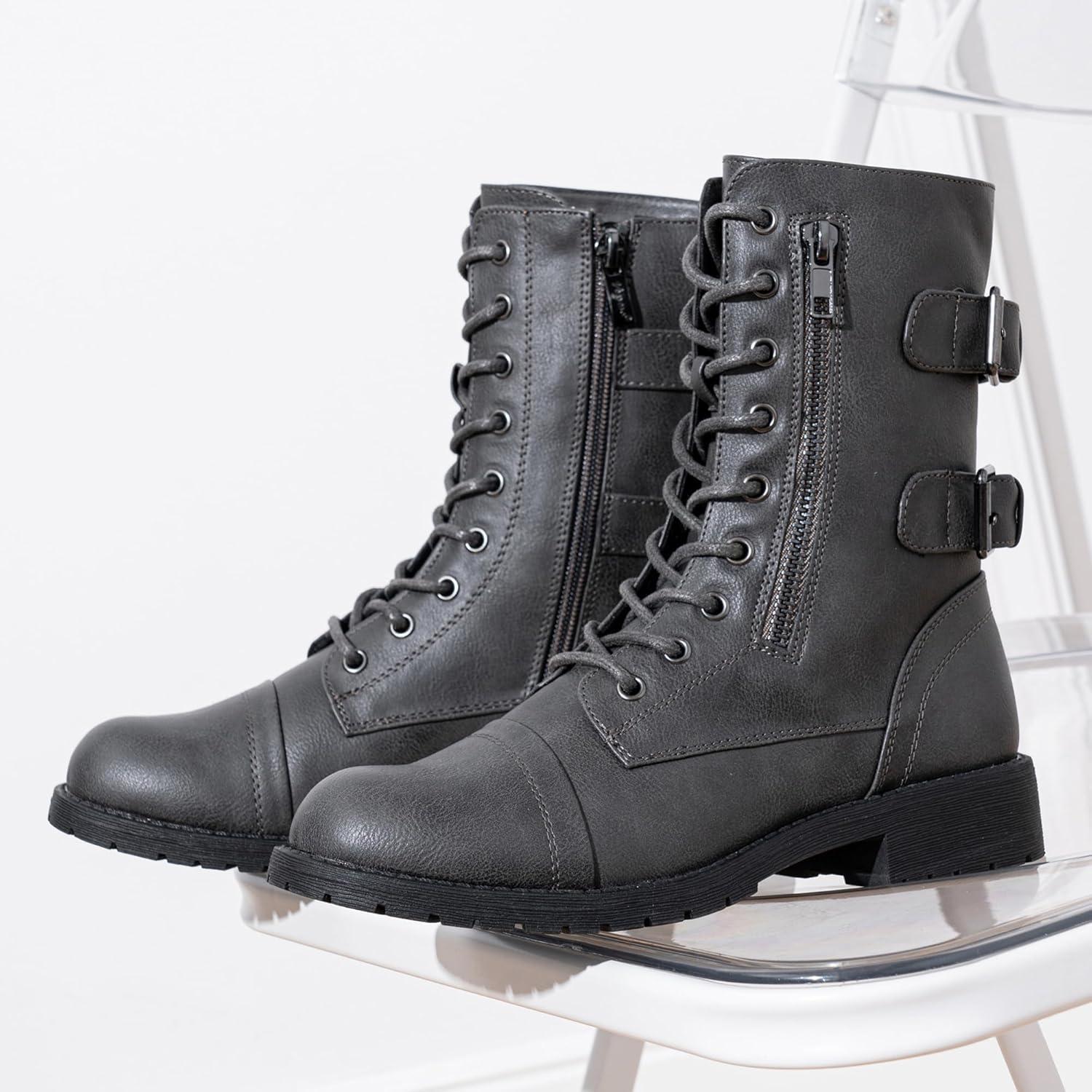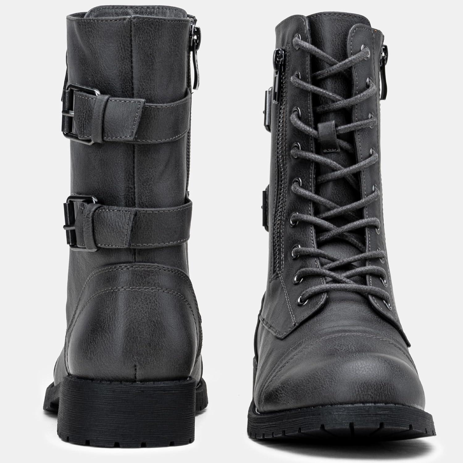 Vepose Women’s 928 Combat Boots Low Heel, Mid Calf Military Boots with Card Knife Wallet Pocket(High Combat-929-grey)