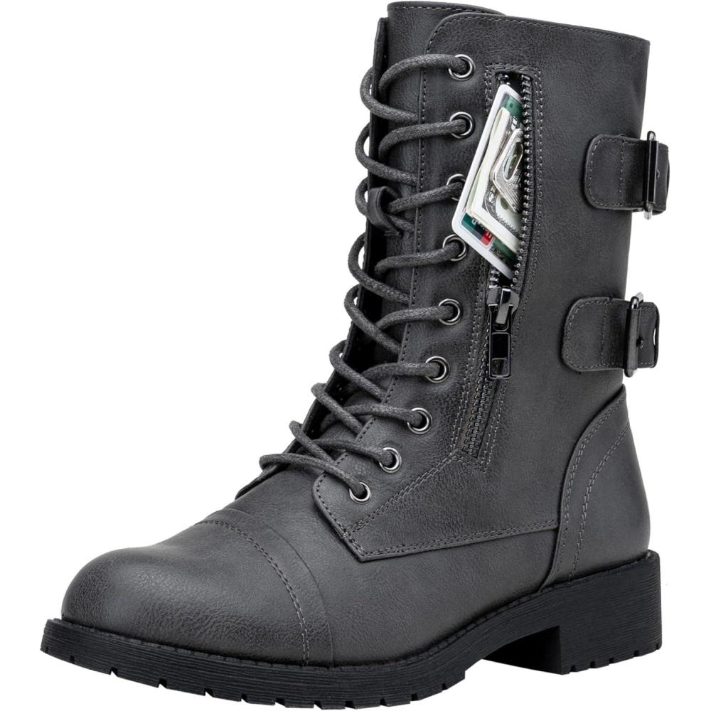 imageVepose Womens 928 Combat Boots Low Heel Mid Calf Military Boots with Card Knife Wallet PocketHigh Combat929grey