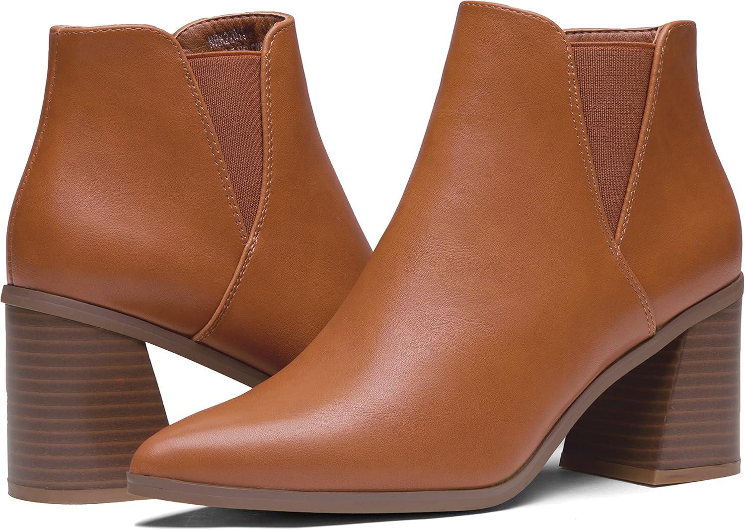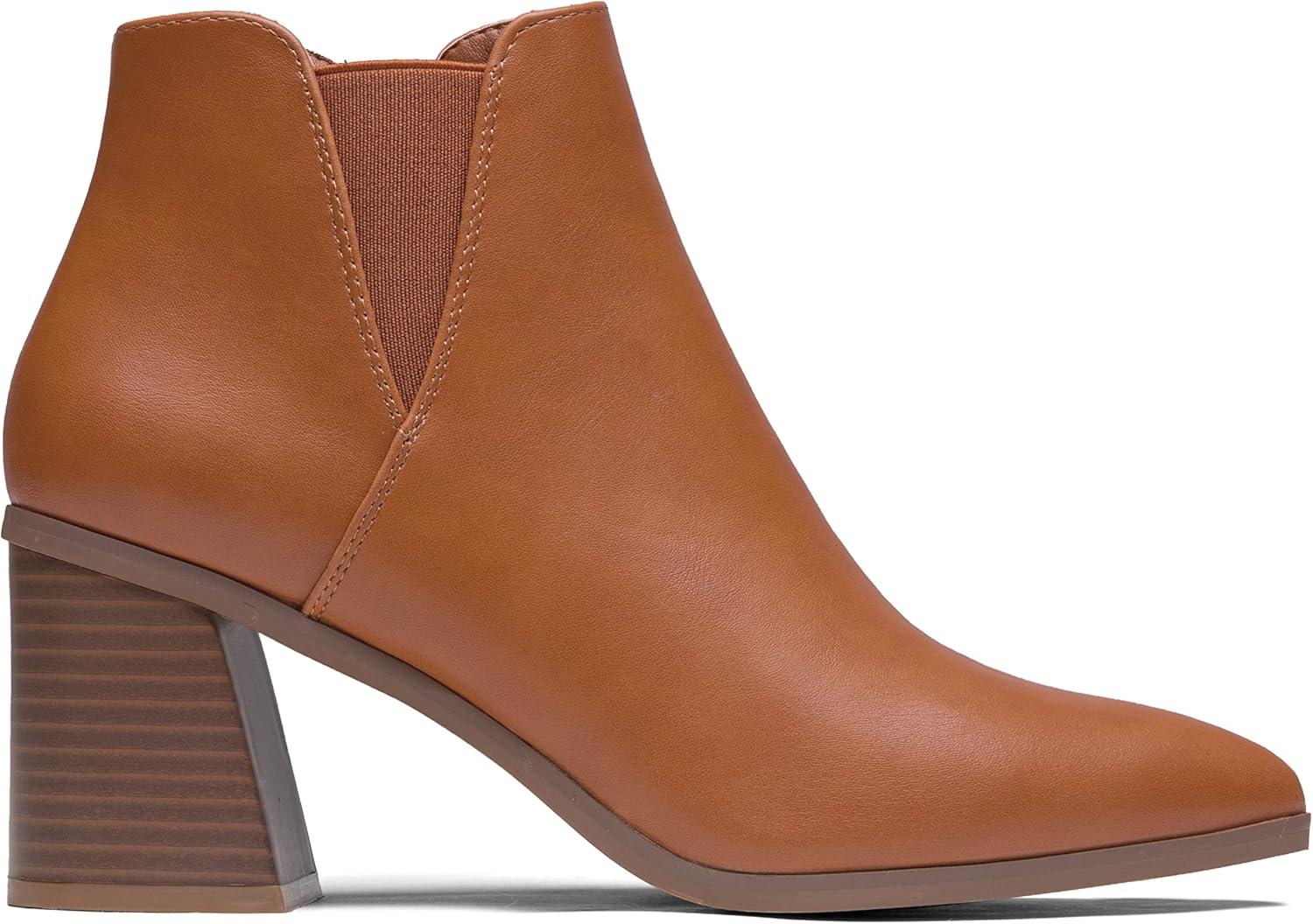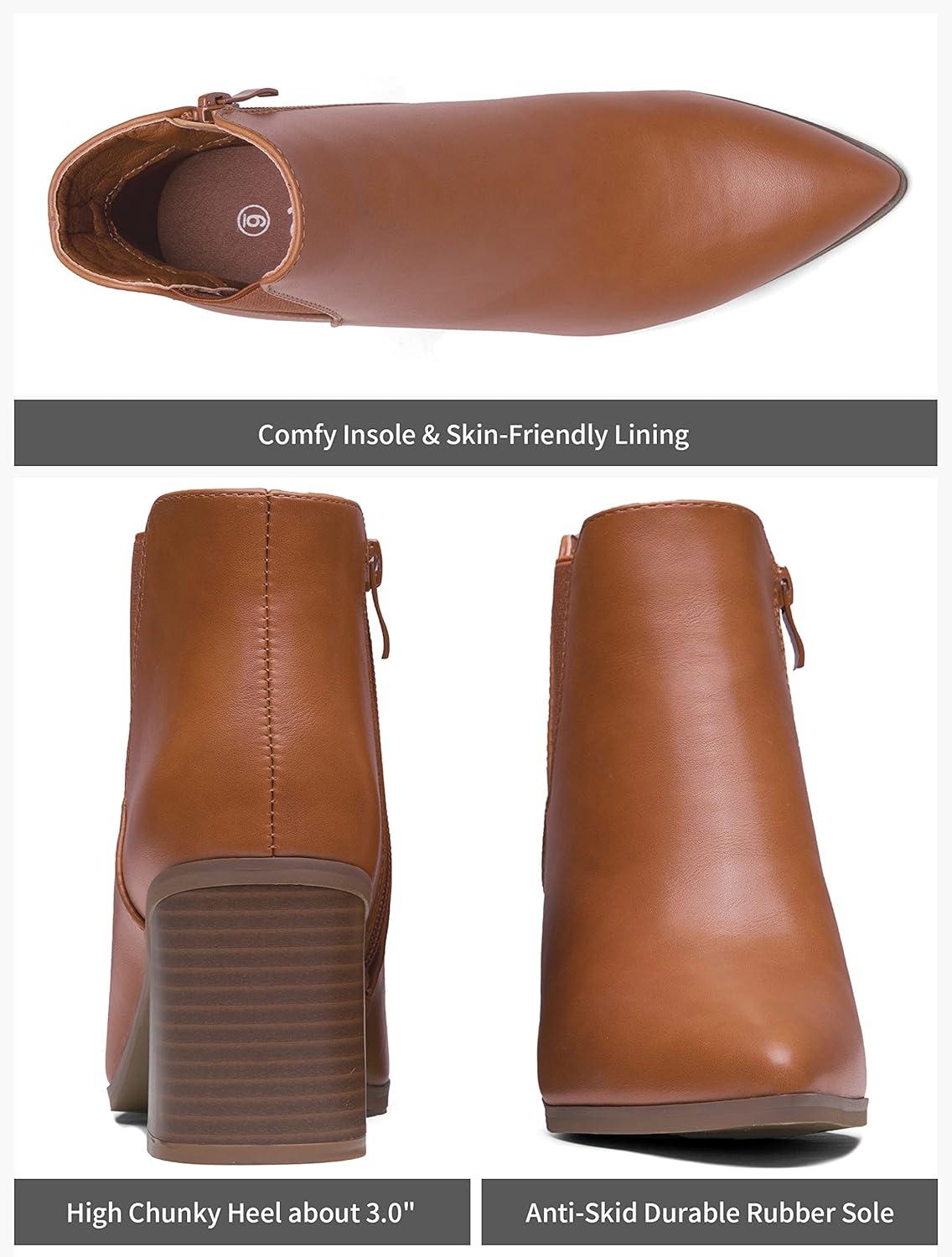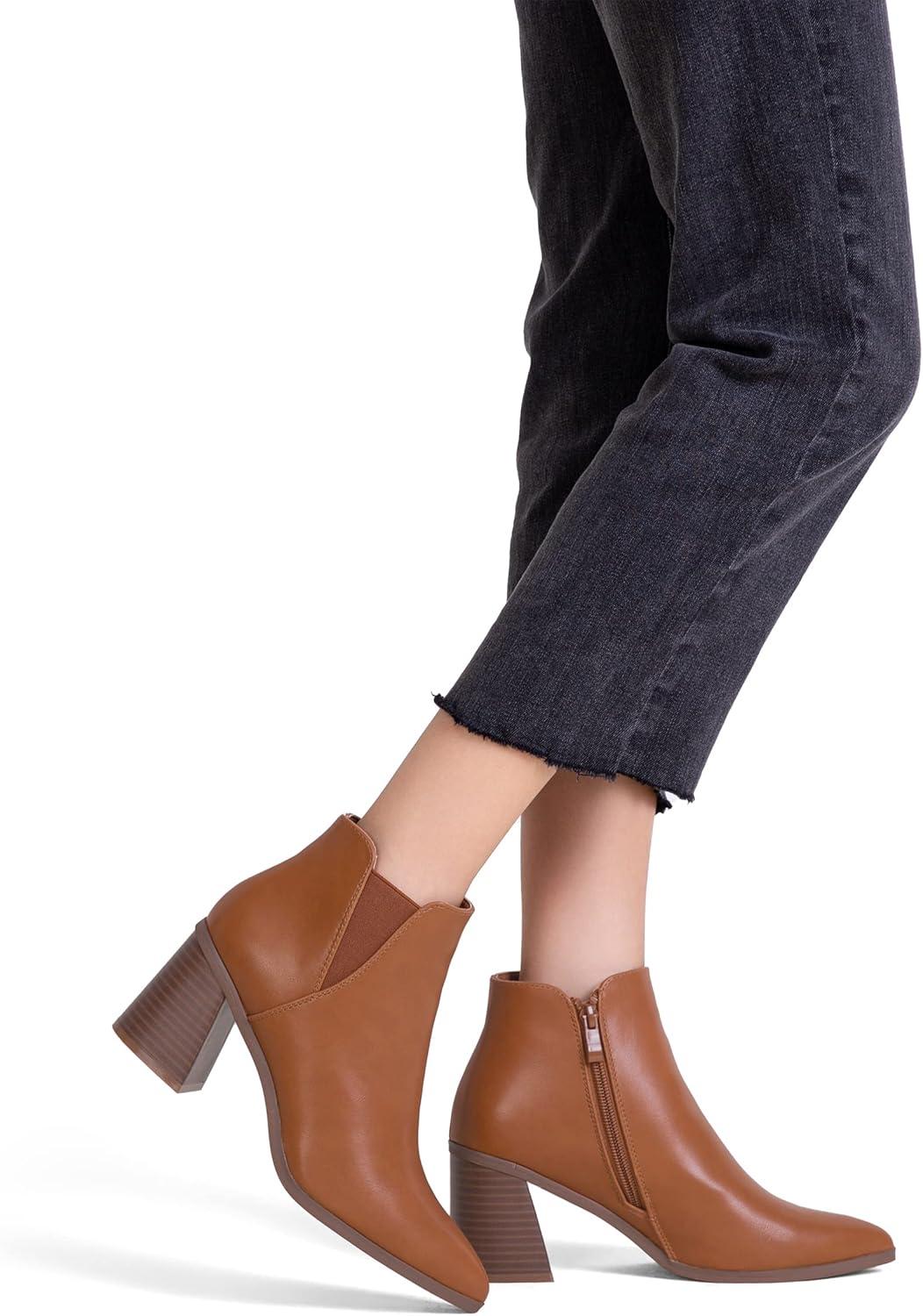 imageVepose Womens 9631 Ankle Booties Pointed Toe Block Chunky Heel Boots with Side ZipperChunky Chelsea9631brown