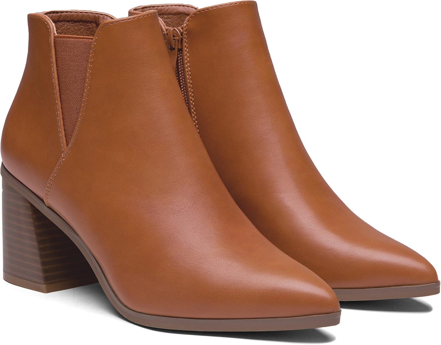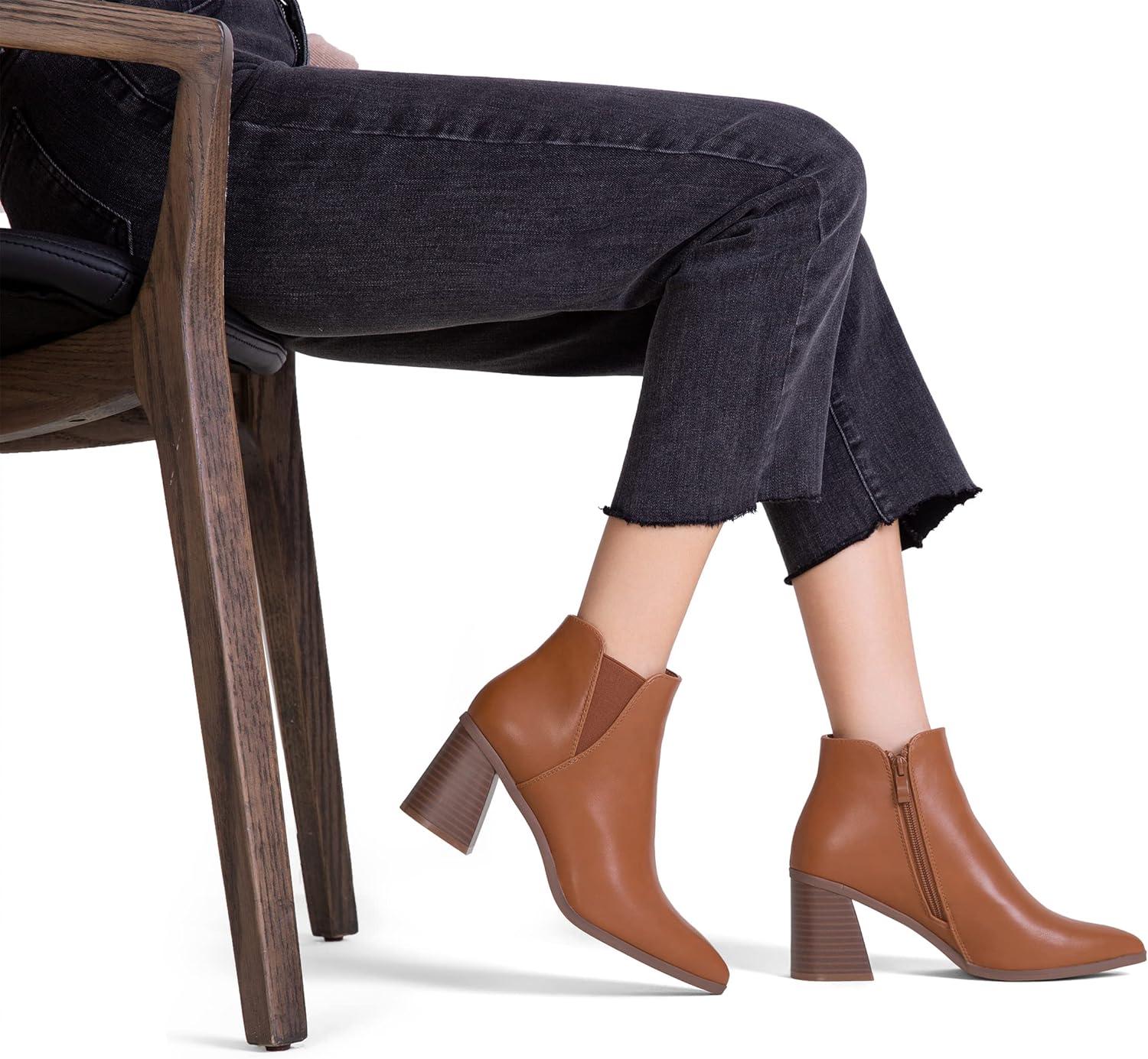 Vepose Women’s 9631 Ankle Booties Pointed Toe, Block Chunky Heel Boots with Side Zipper(Chunky Chelsea-9631-brown)