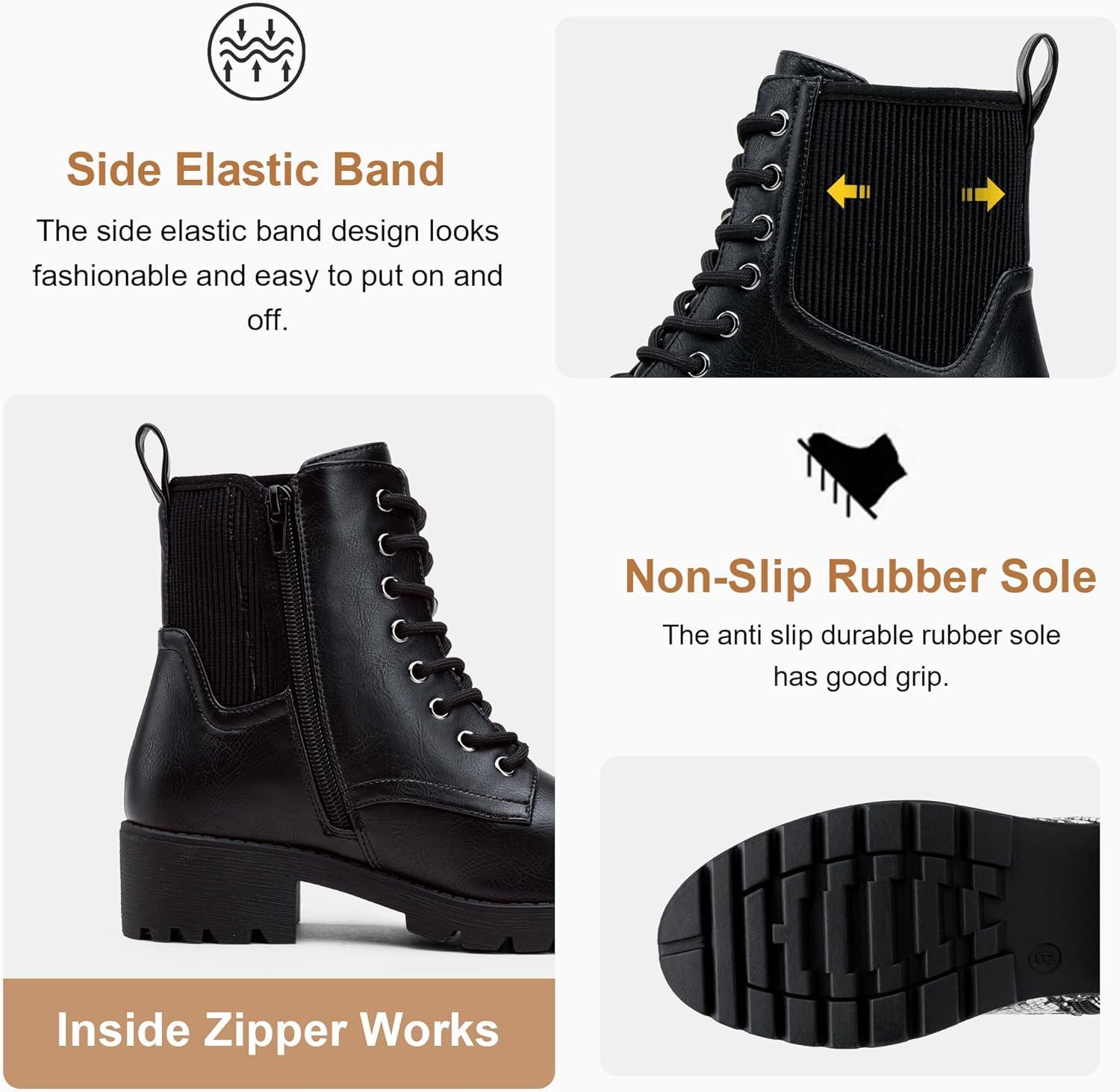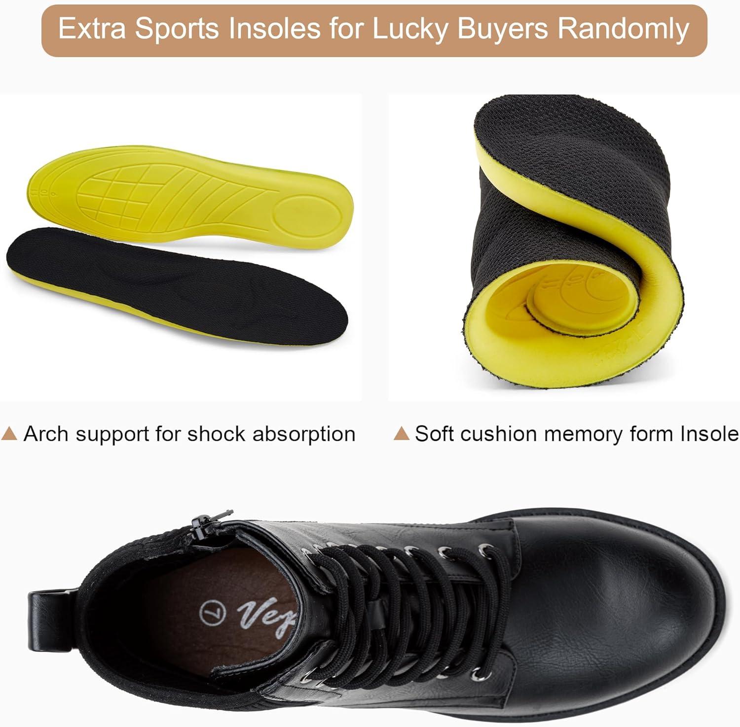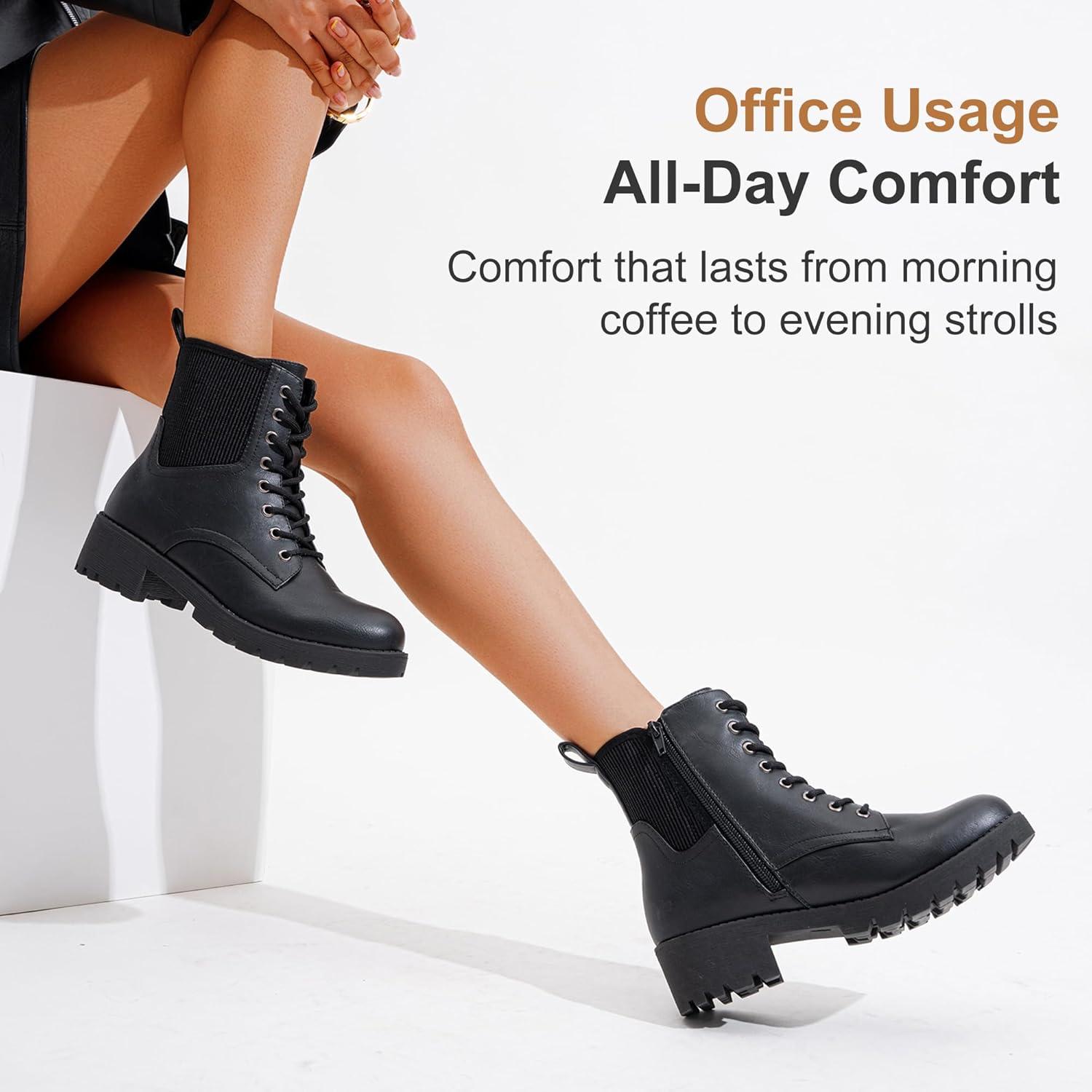 Vepose Women’s Ankle Boots, Combat Lace up Booties with Inside Zipper(Black)