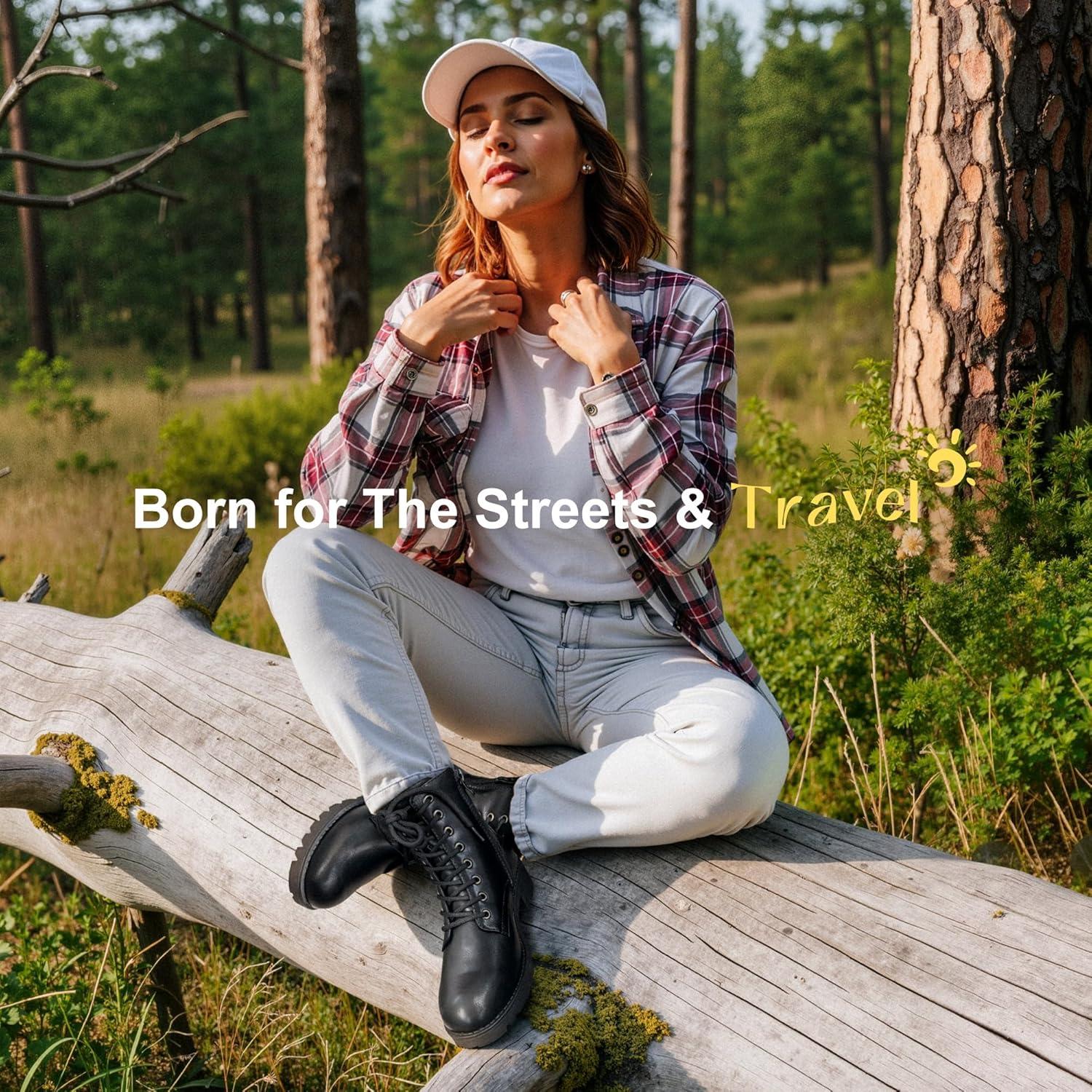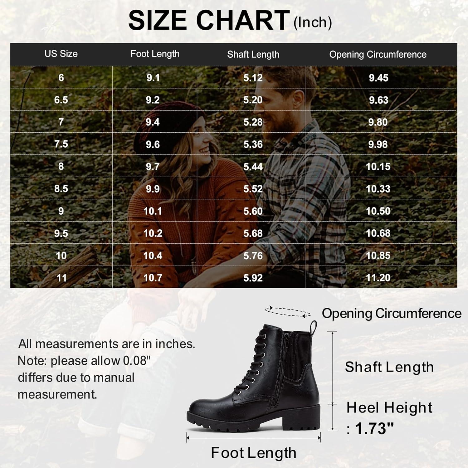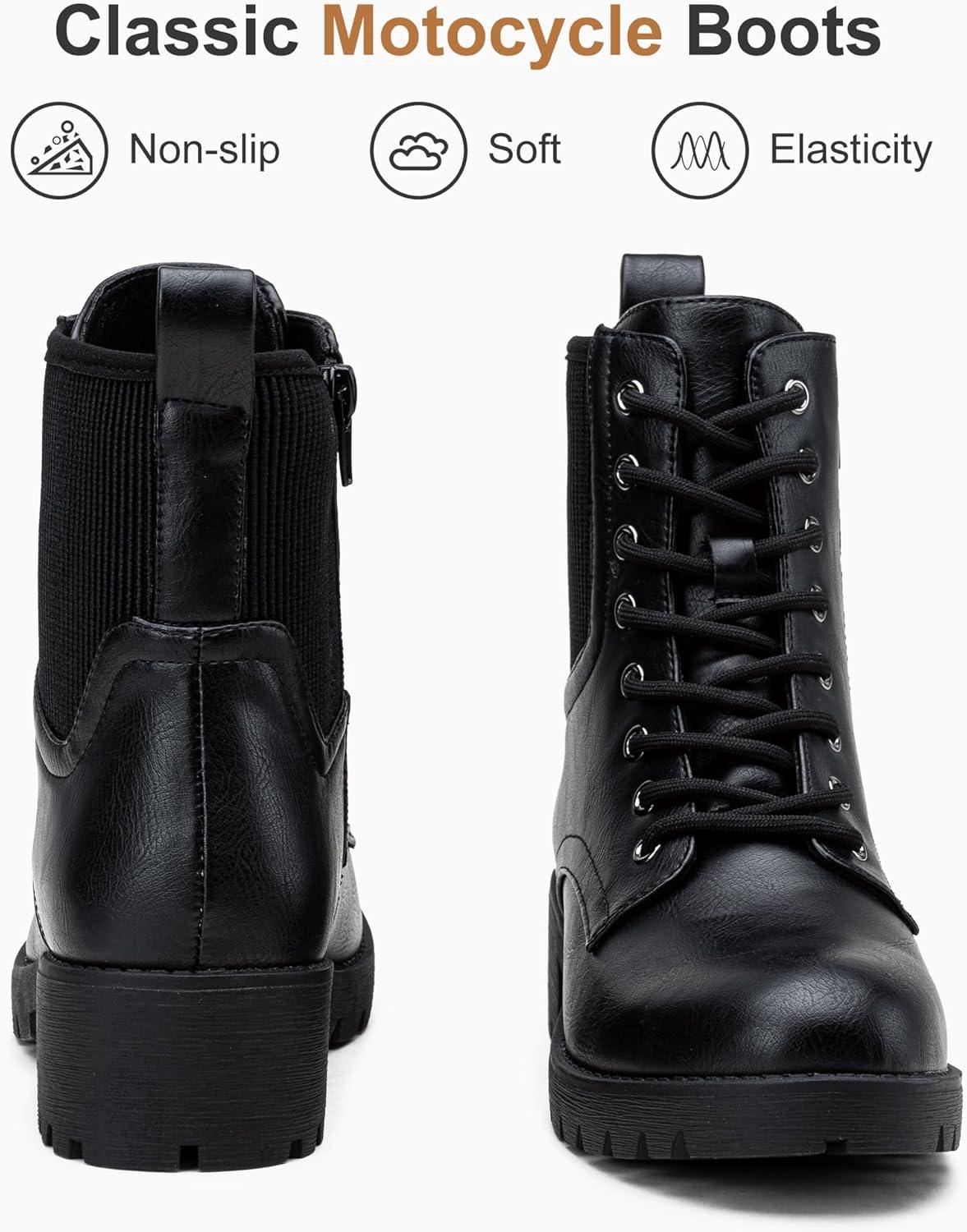 Vepose Women’s Ankle Boots, Combat Lace up Booties with Inside Zipper(Black)