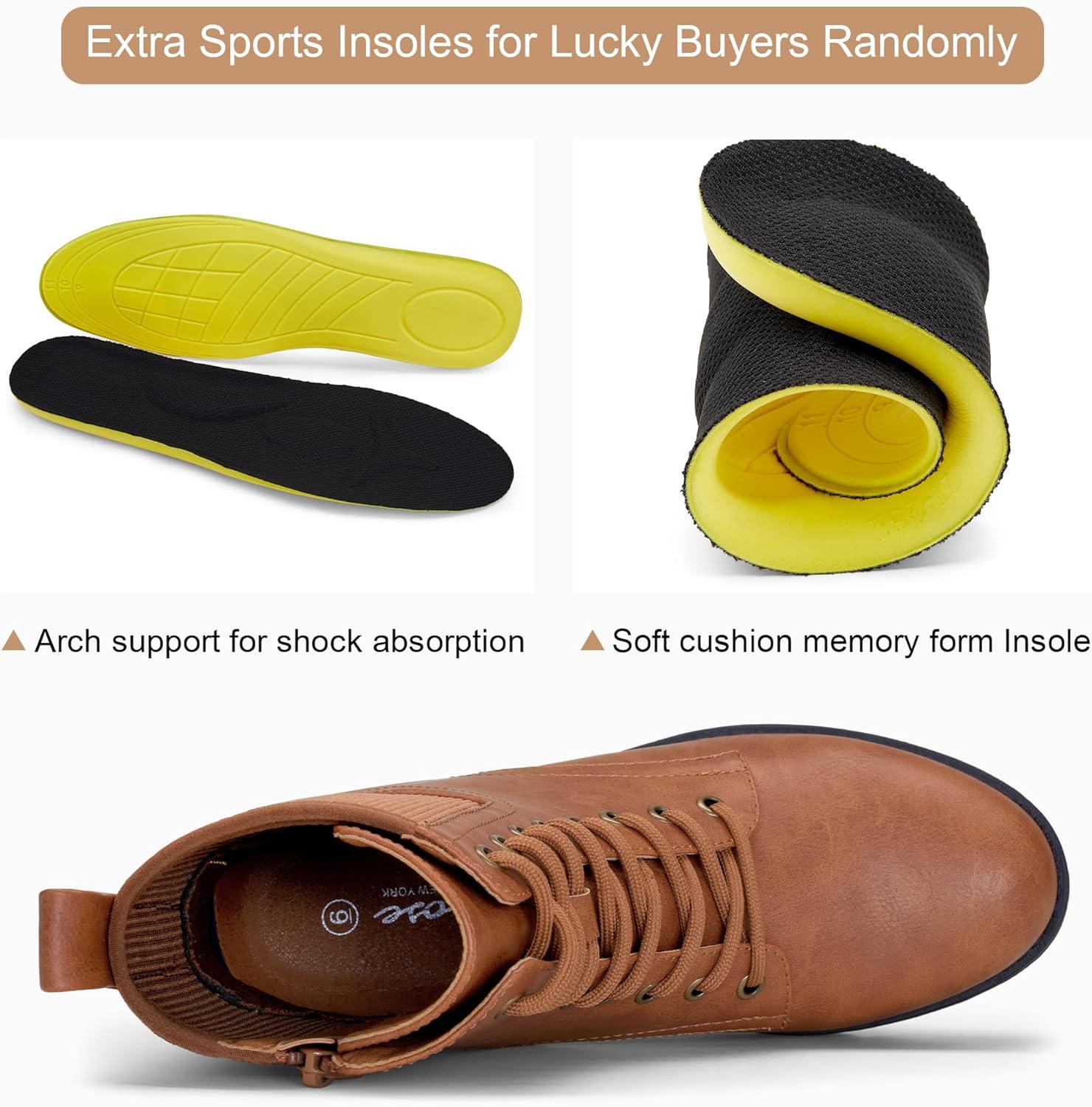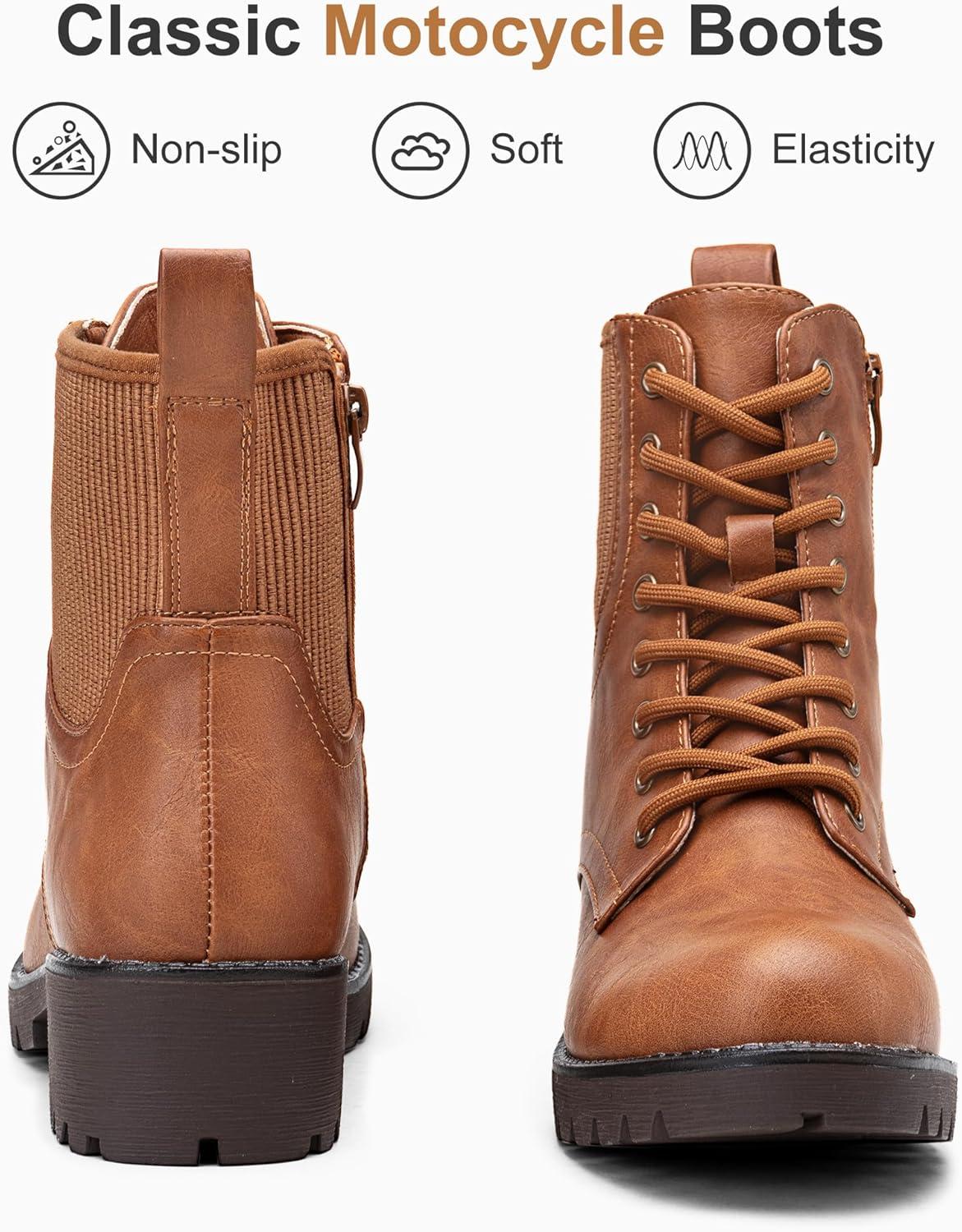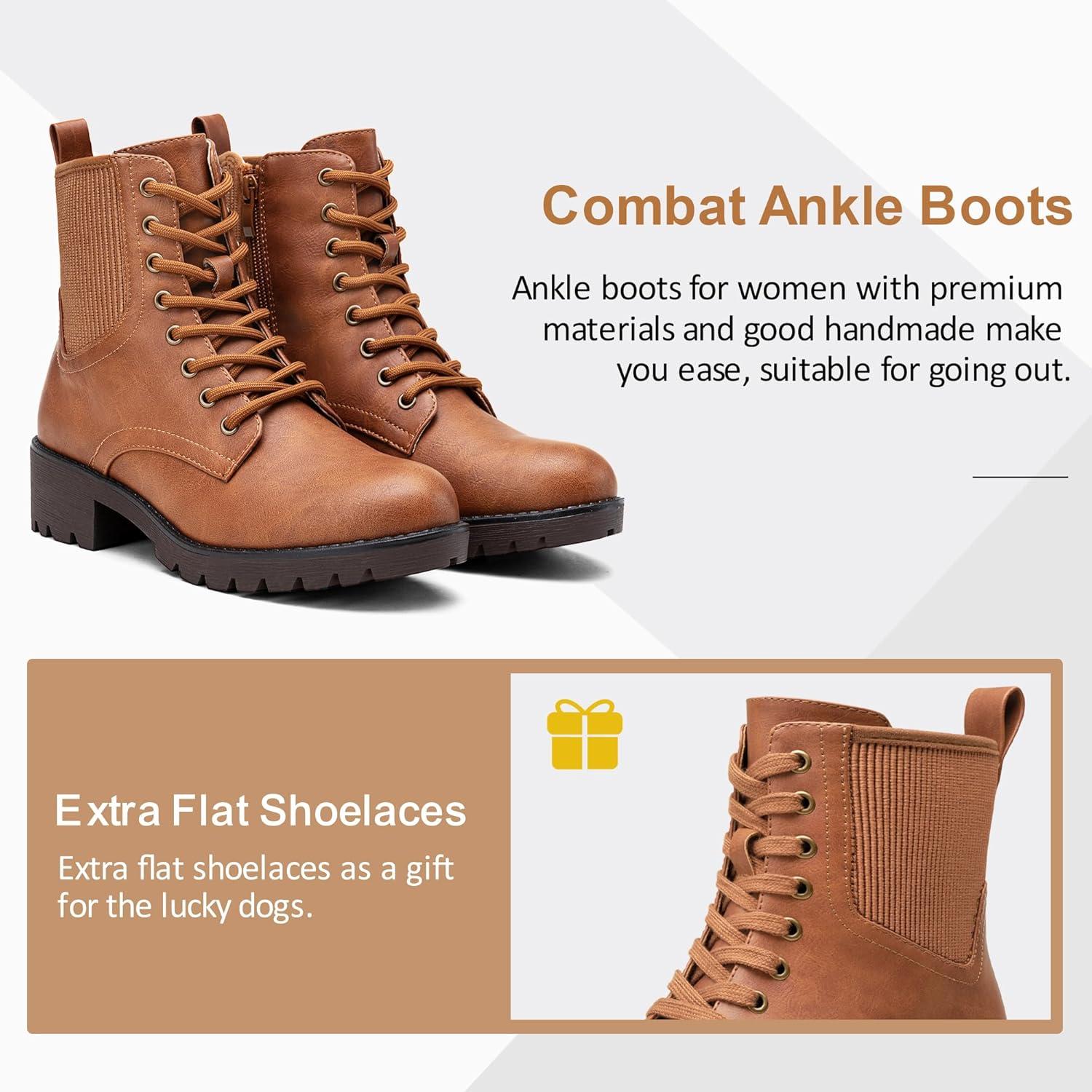 Vepose Women’s Ankle Boots, Combat Lace up Booties with Inside Zipper(Cognac)