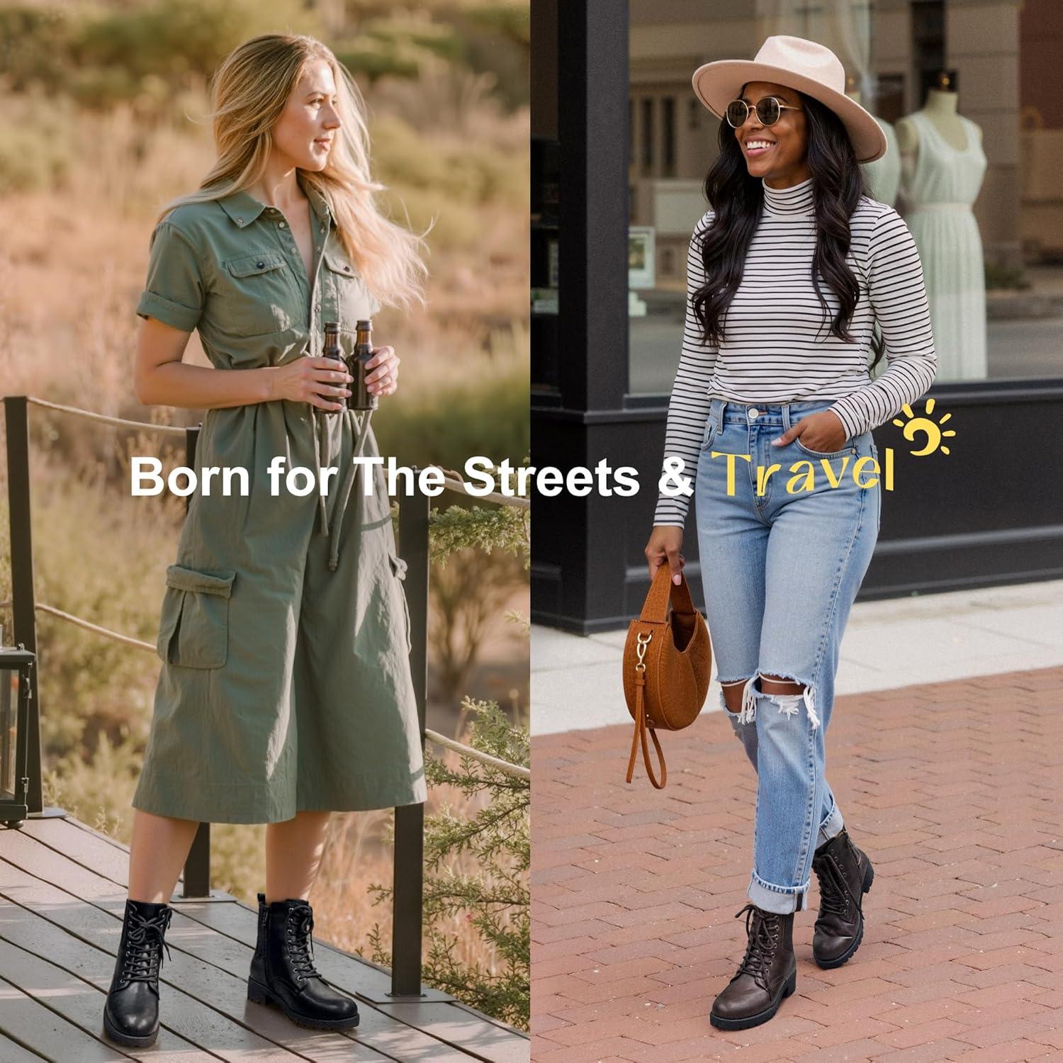 Vepose Women’s Ankle Boots, Combat Lace up Booties with Inside Zipper(Black)