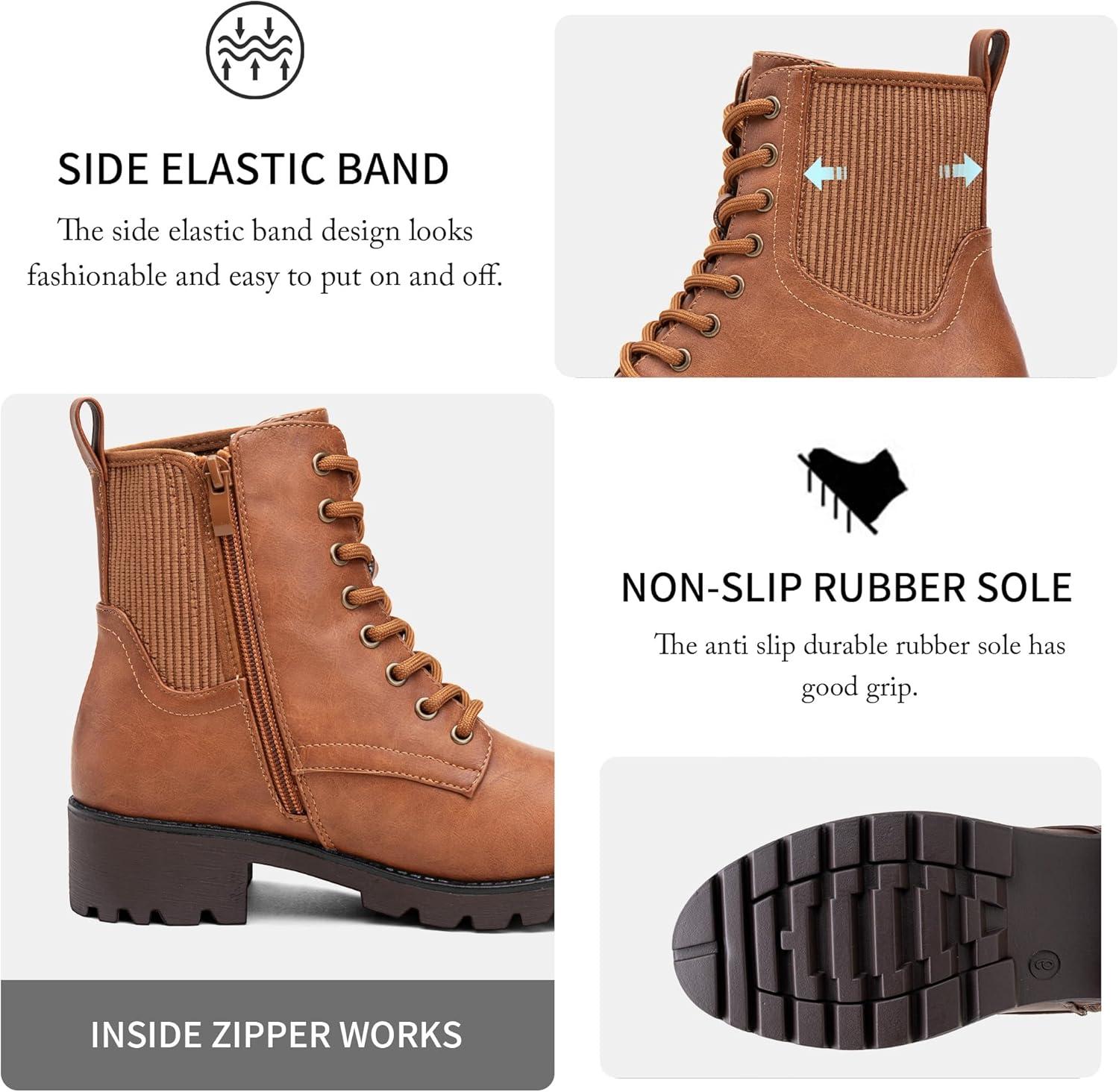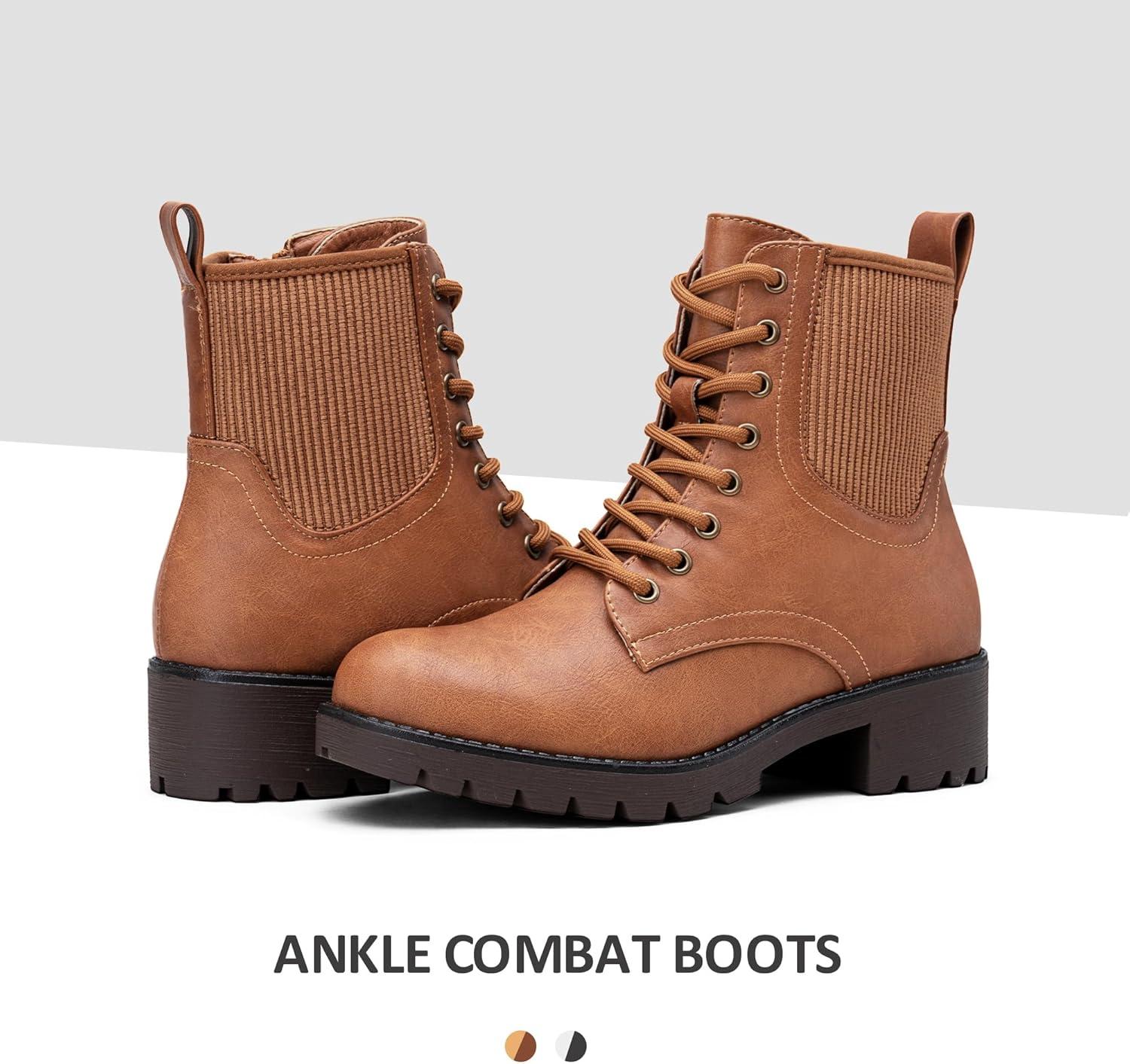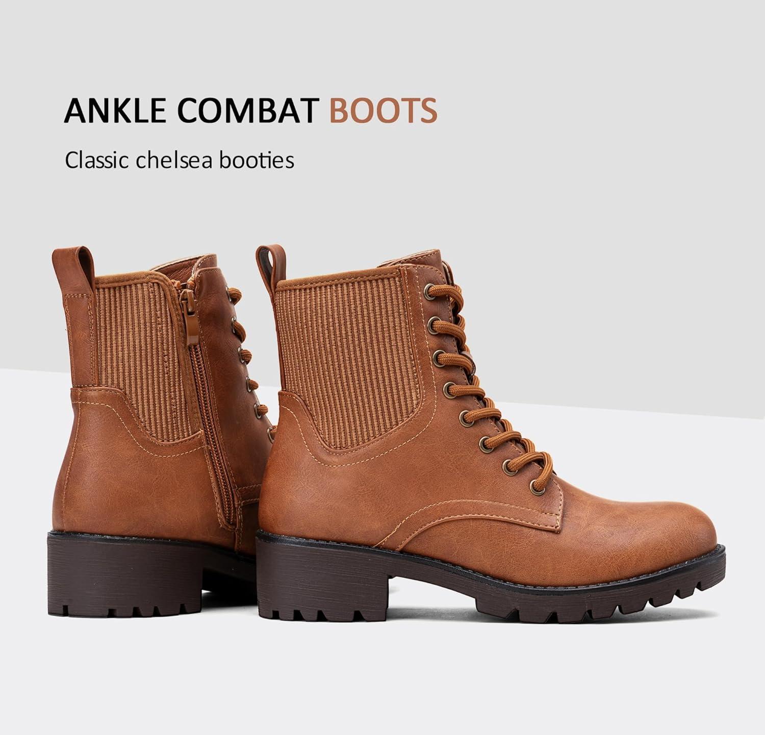 Vepose Women's Ankle Boots, Combat Lace up Booties with Inside Zipper(Chelsea Laces-916-brown)