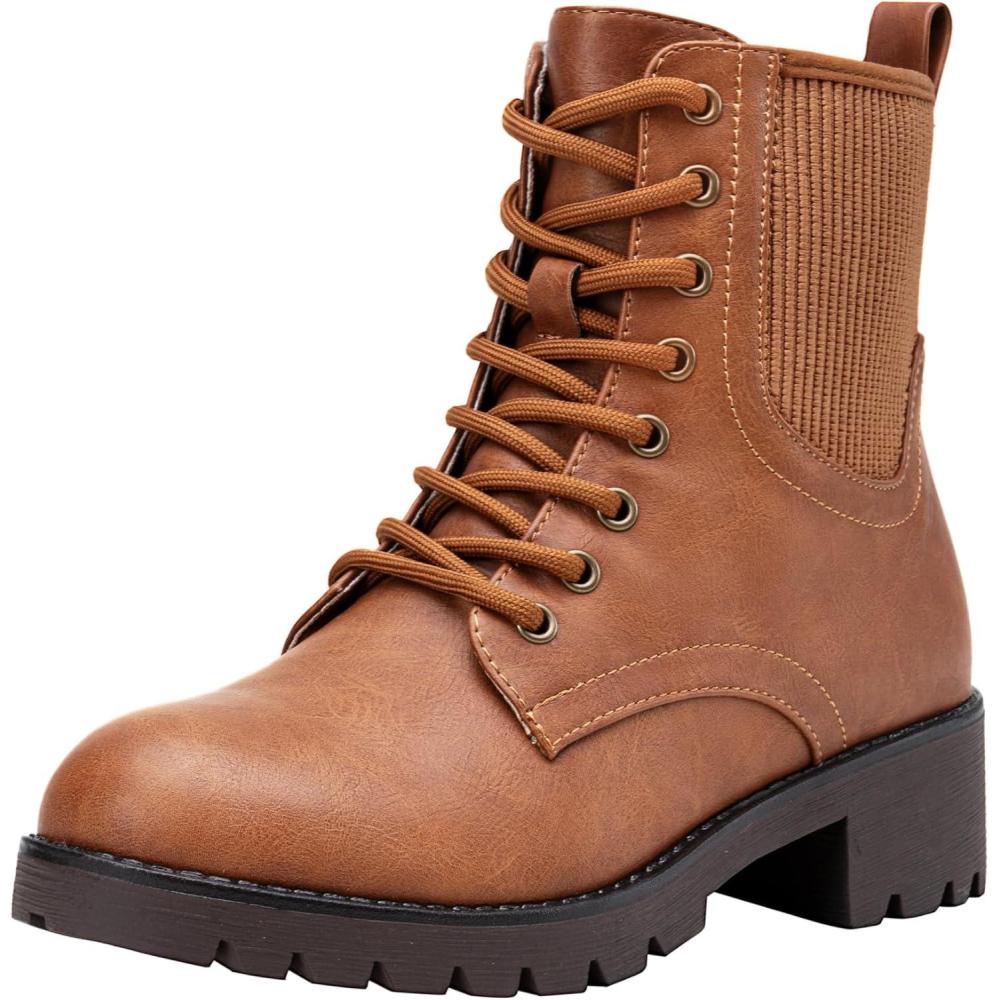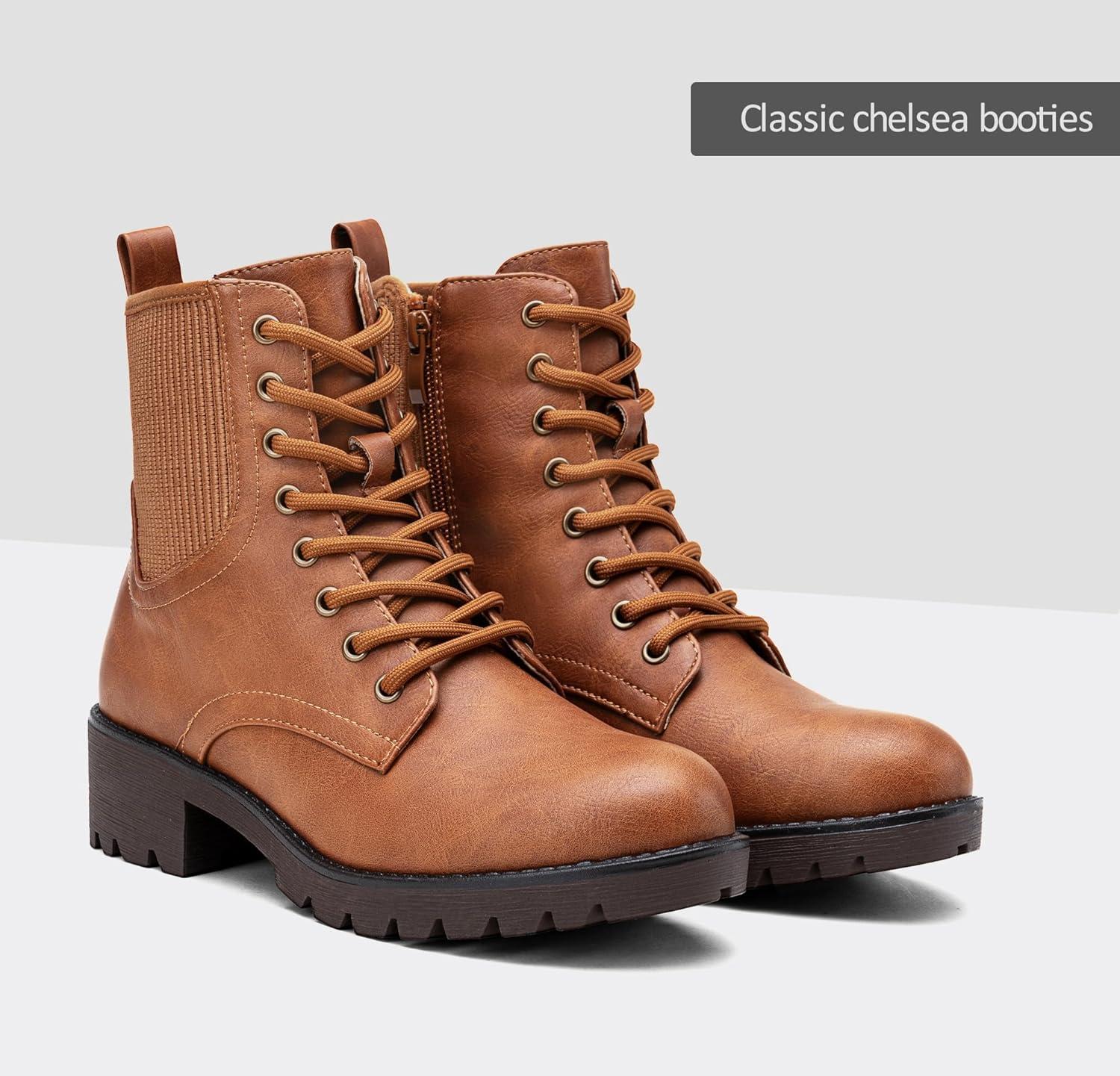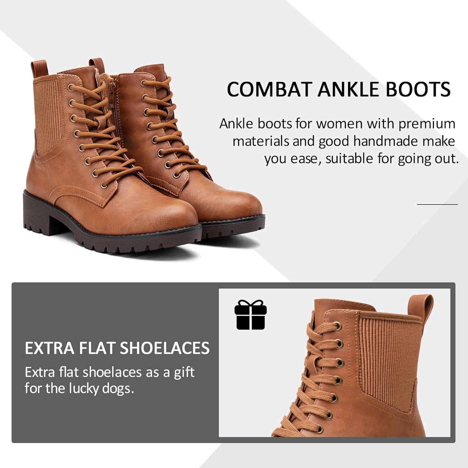 Vepose Women’s Ankle Boots, Combat Lace up Booties with Inside Zipper(Chelsea Laces-916-dark Tan)