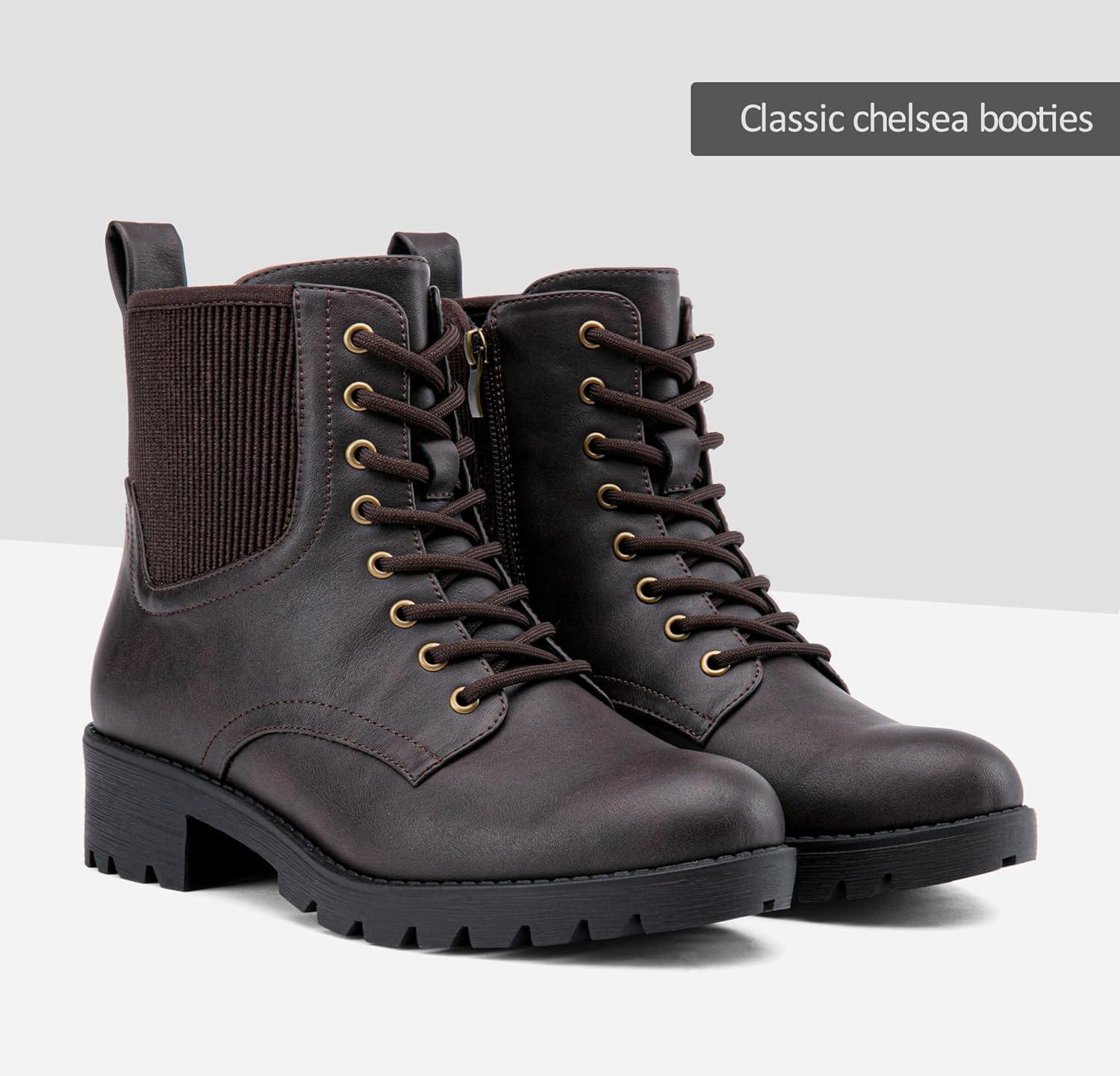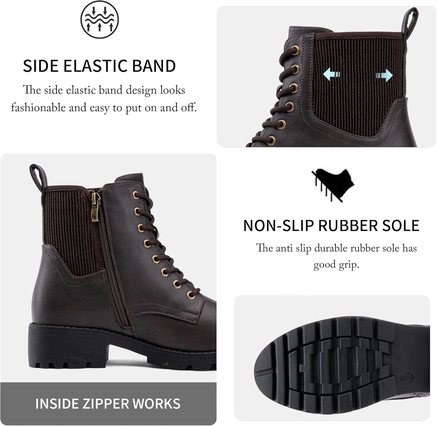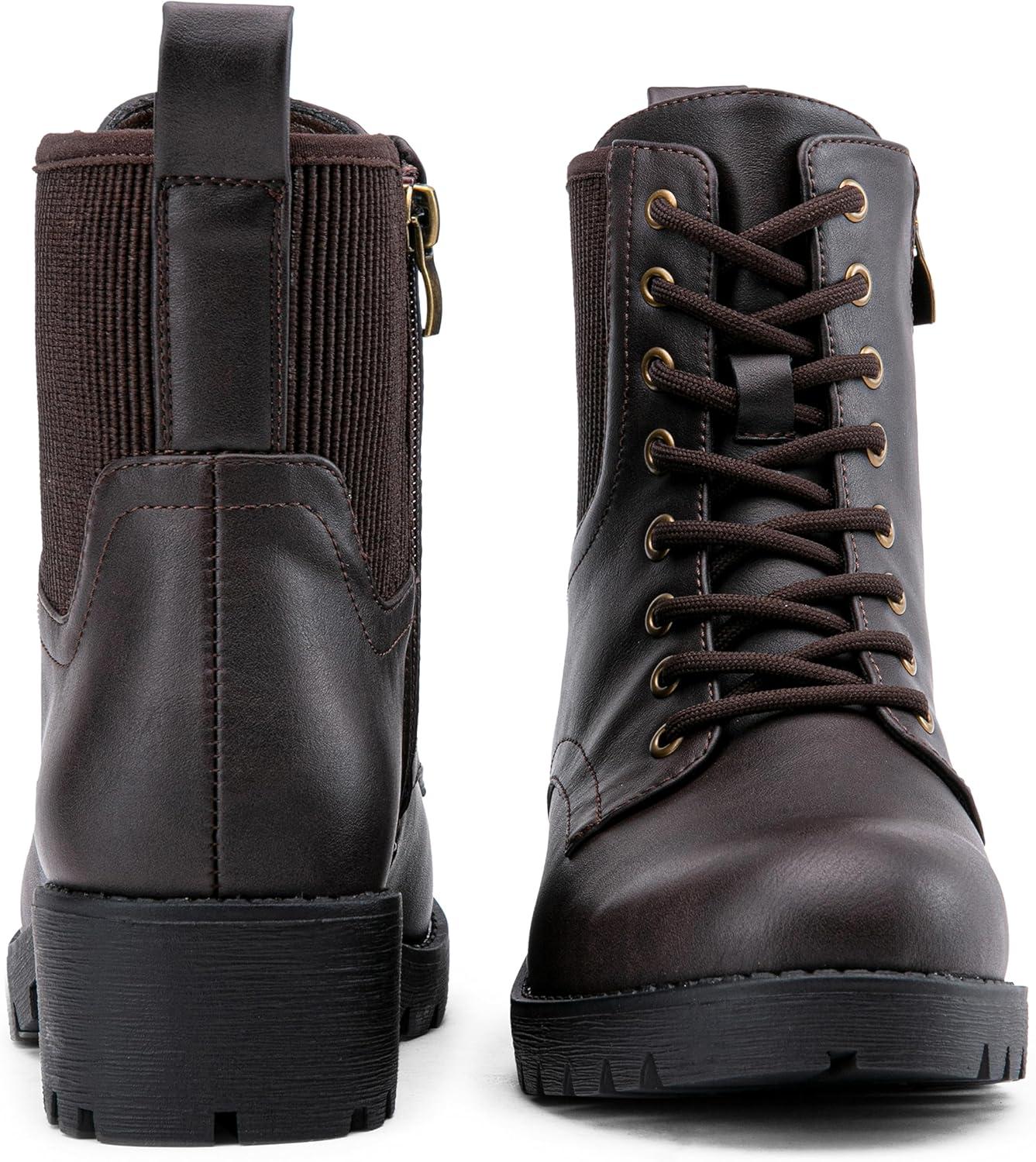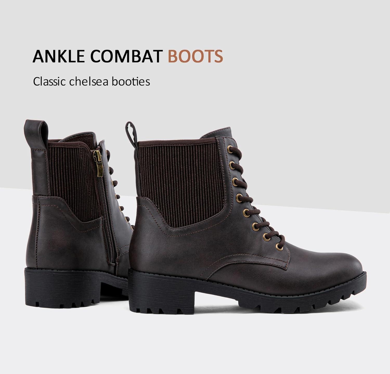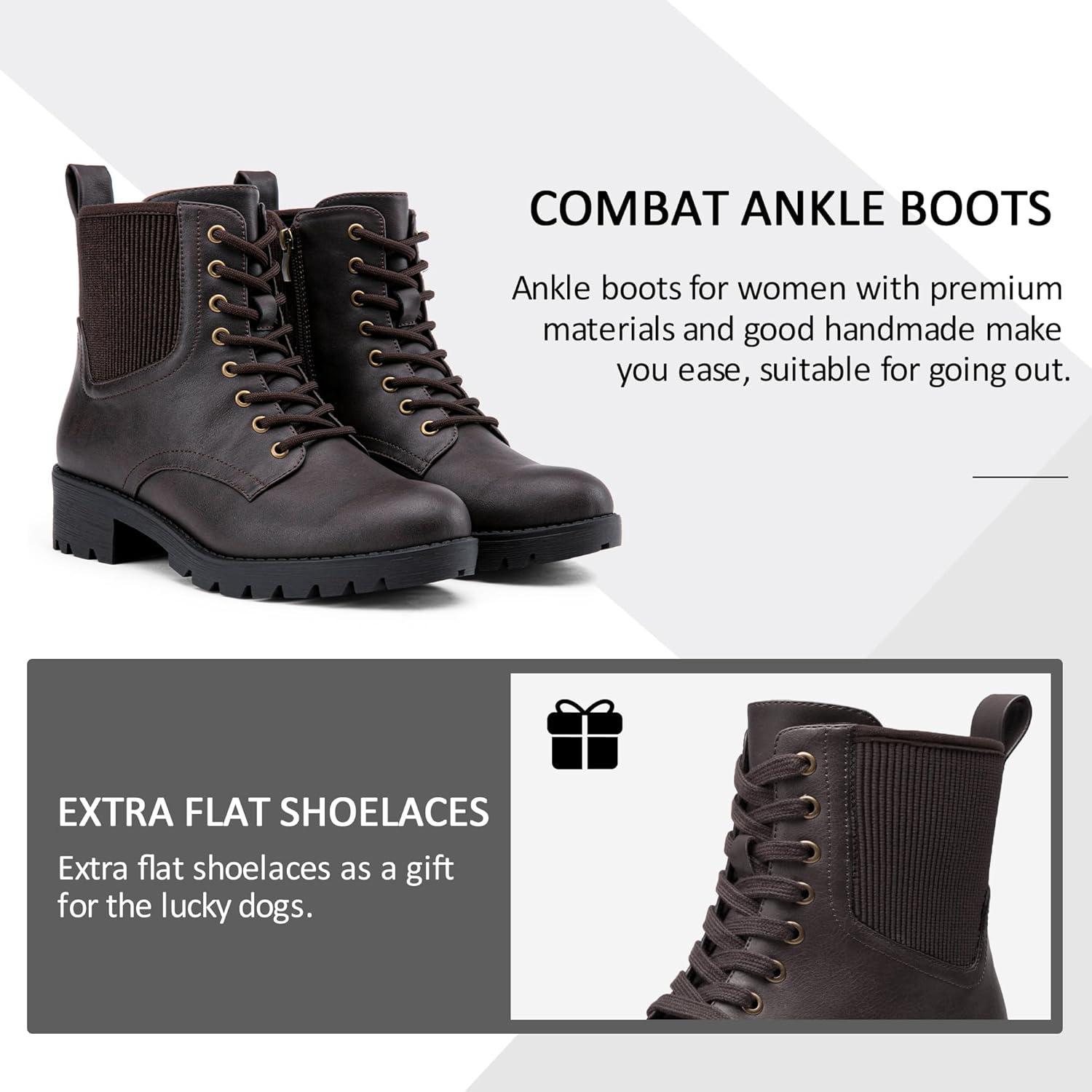 Vepose Women’s Ankle Boots, Combat Lace up Booties with Inside Zipper(Chelsea Laces-916-brown)