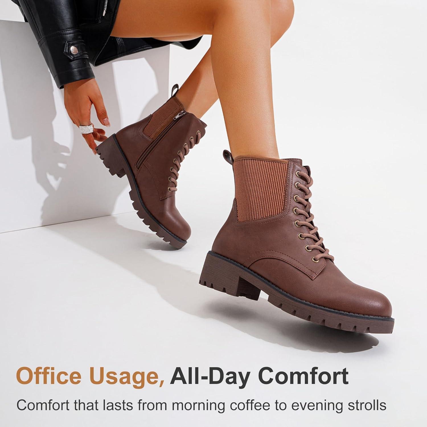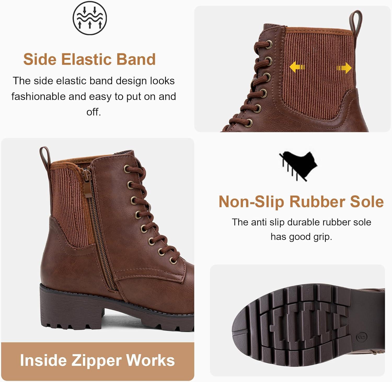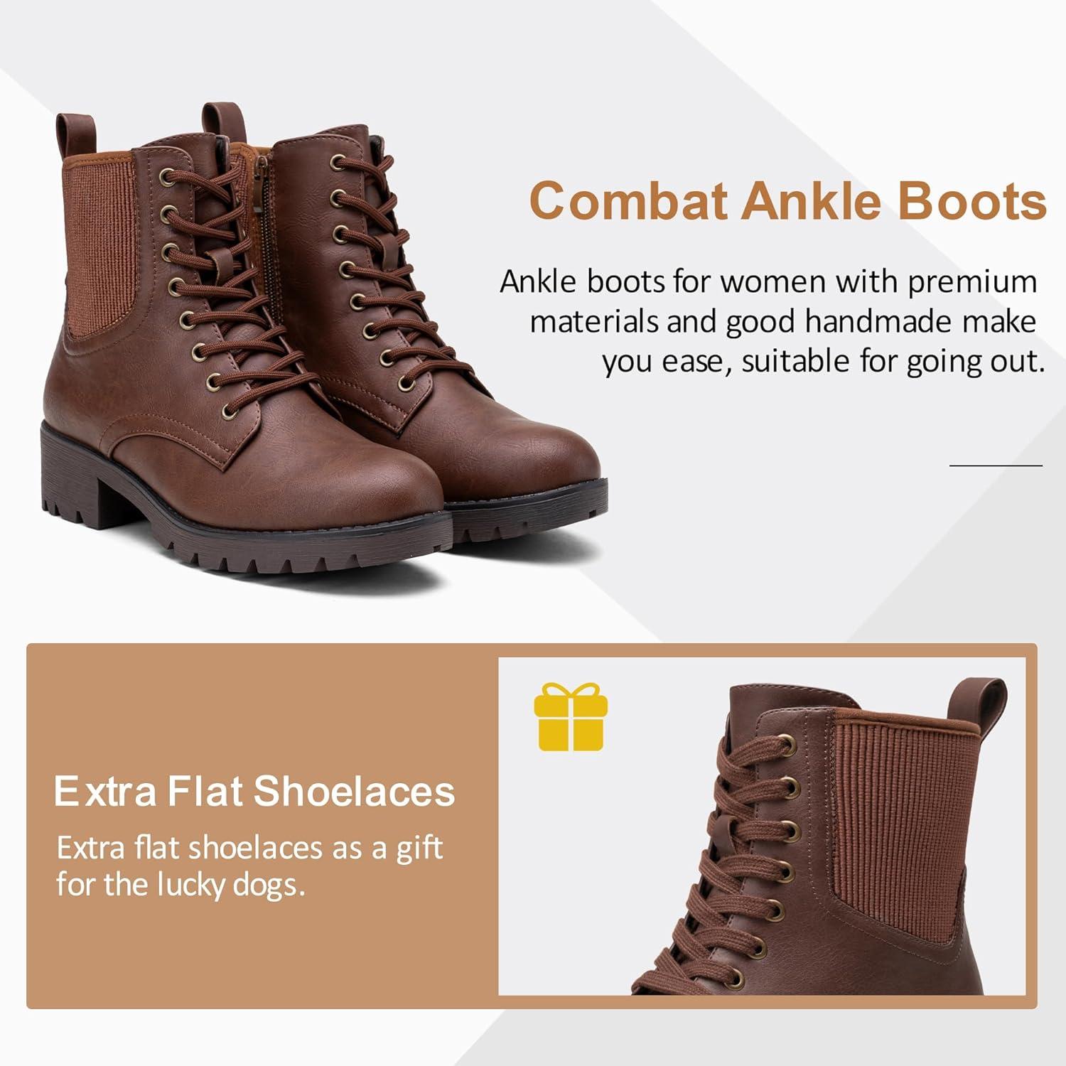 Don’t wait, get up to 50% off on Vepose Women’s Ankle Boots, Combat Lace up Booties with Inside Zipper(Cognac) during our end-of-season sale event.