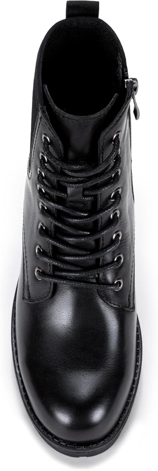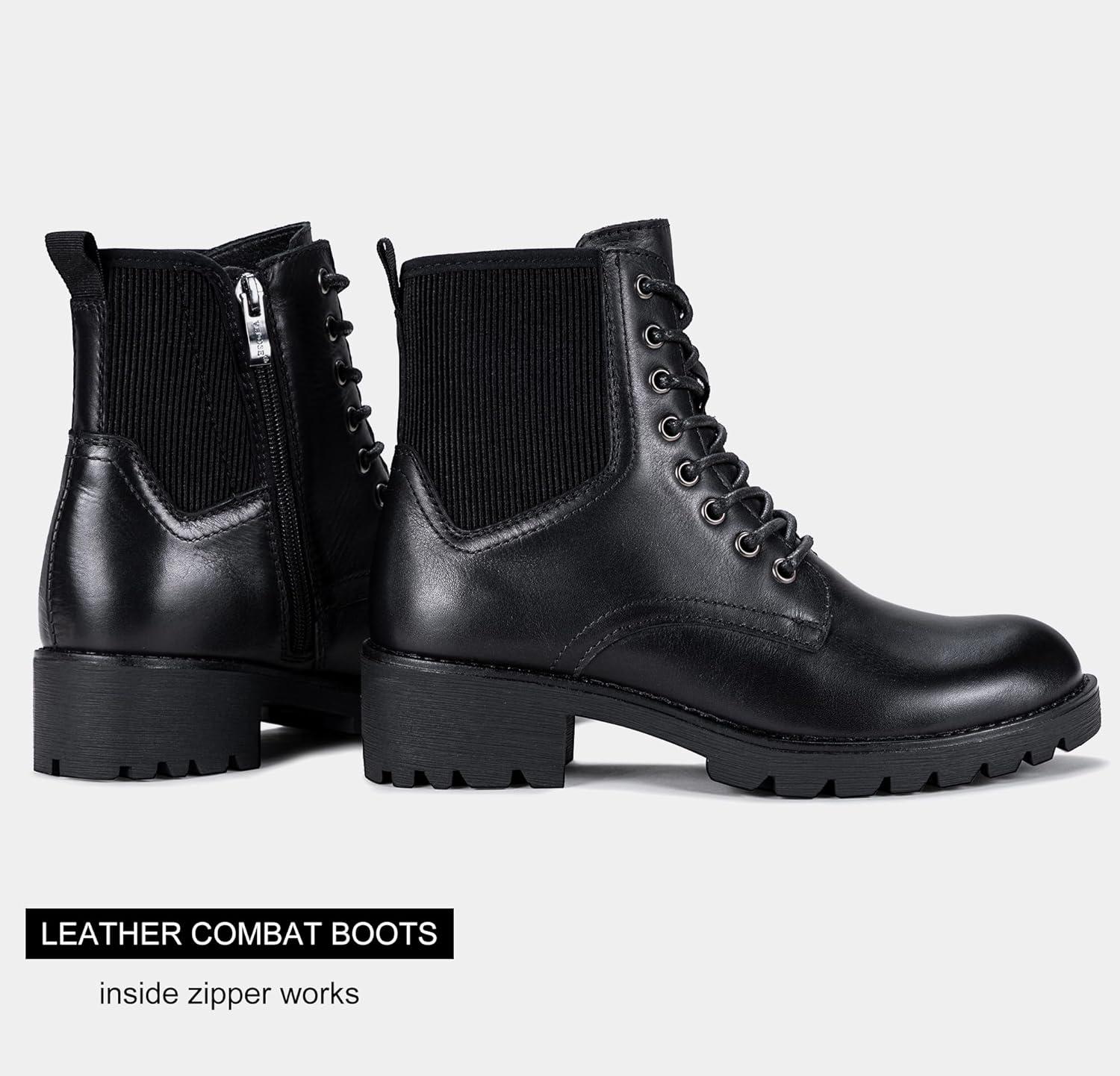 Vepose Women's Ankle Boots, Combat Lace up Booties with Inside Zipper(Leather Black)