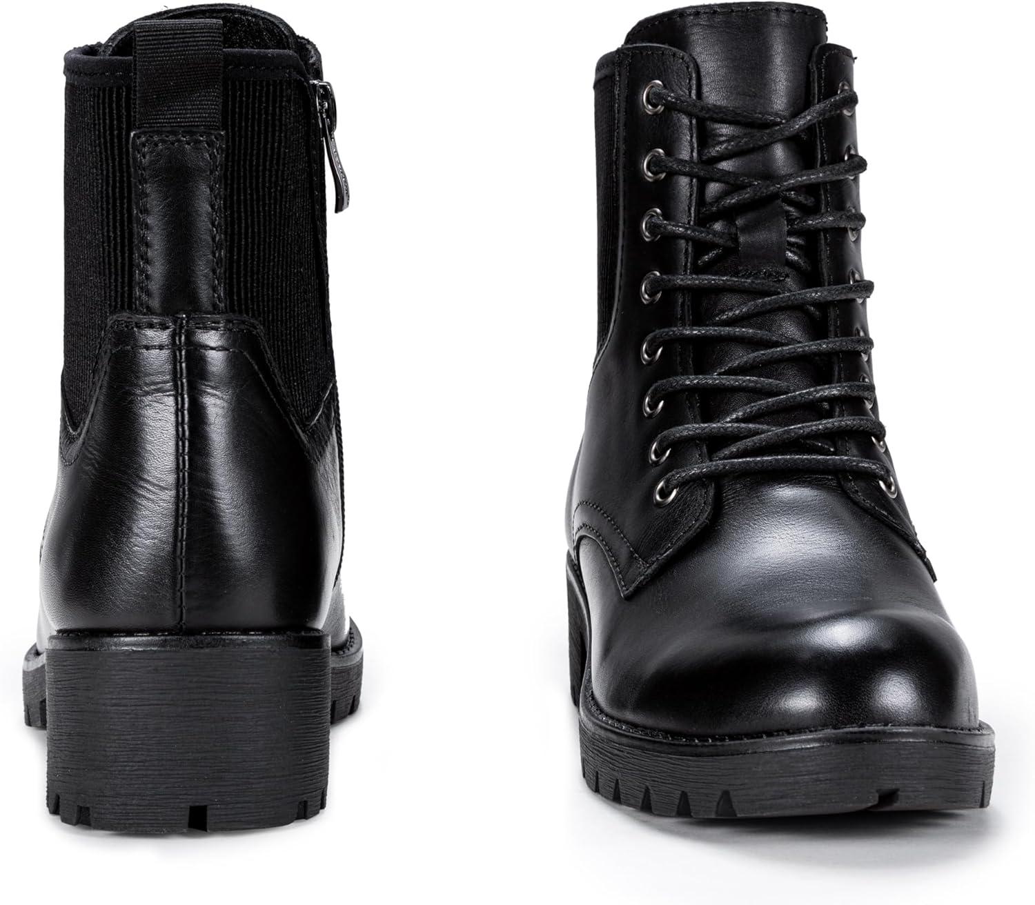 Vepose Women’s Ankle Boots, Combat Lace up Booties with Inside Zipper(Leather Moto Black)