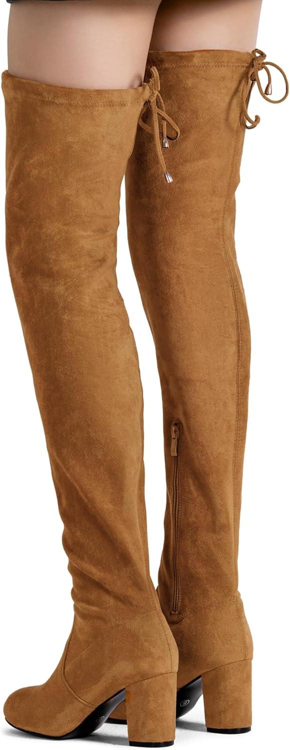 Vepose Women’s Aria Thigh High Over The Knee Boots, Cute Suede Long Boots with High Heel and Inner Zipper(Khaki Coffee Suede)