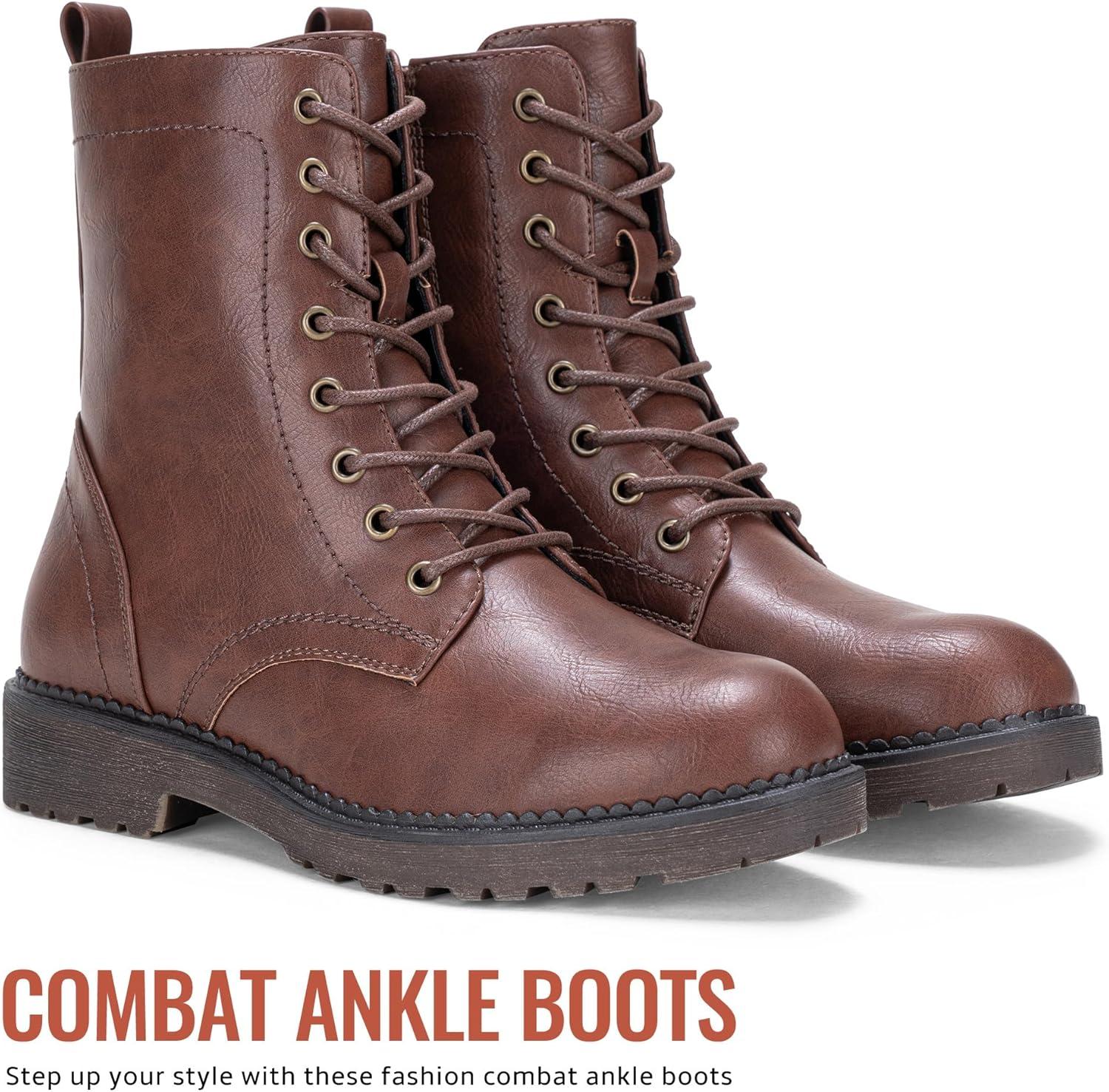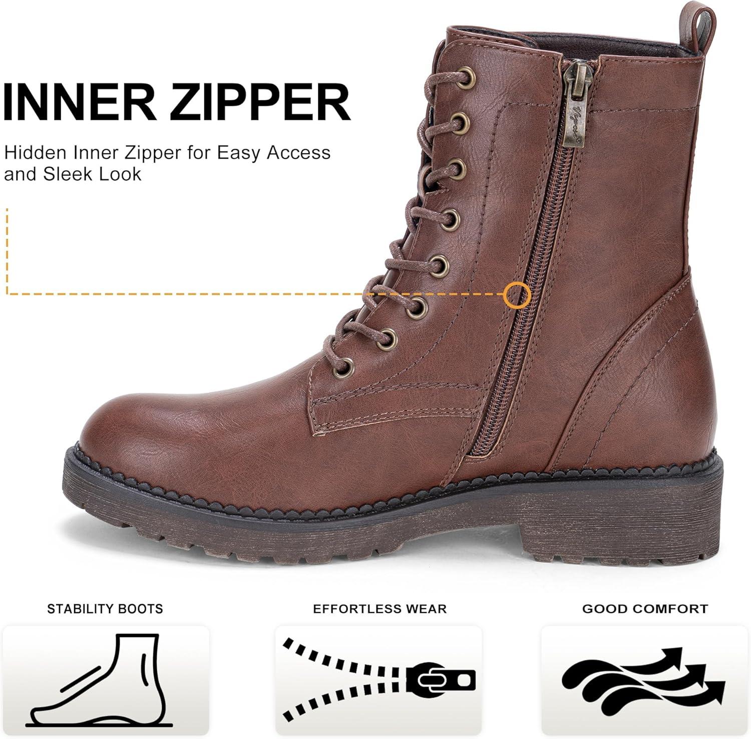 Vepose Women’s Combat Ankle Black Flat Boots, Military Fashion 925 Booties Inner Zipper(Brown)