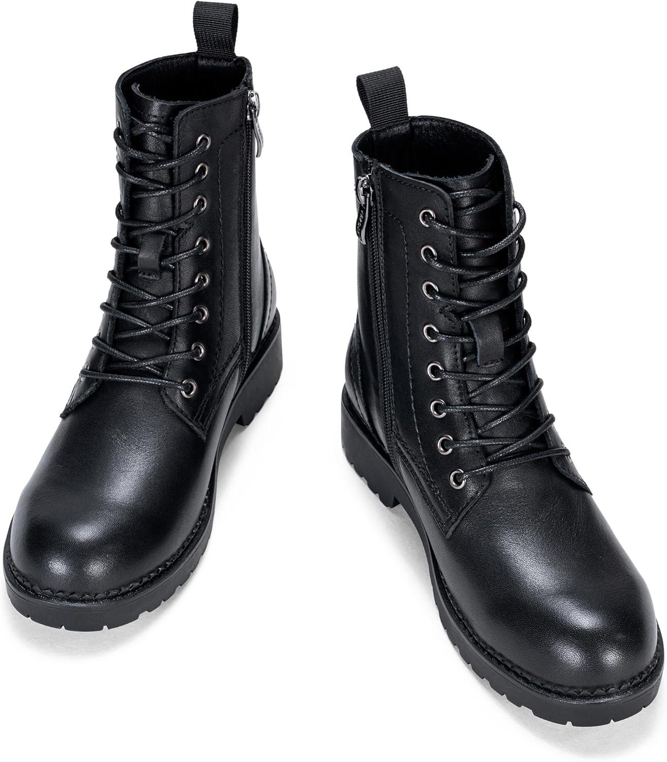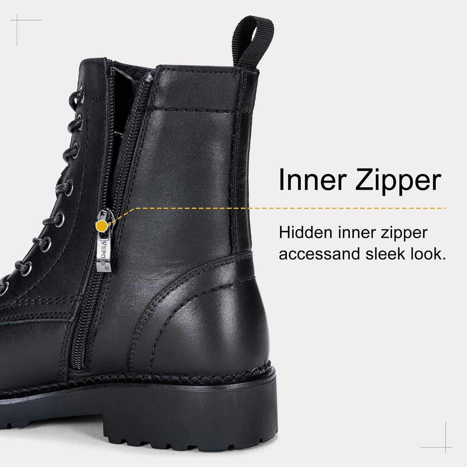 Vepose Women's Combat Ankle Black Flat Boots, Military Fashion 925 Booties Inner Zipper(Leather Black)