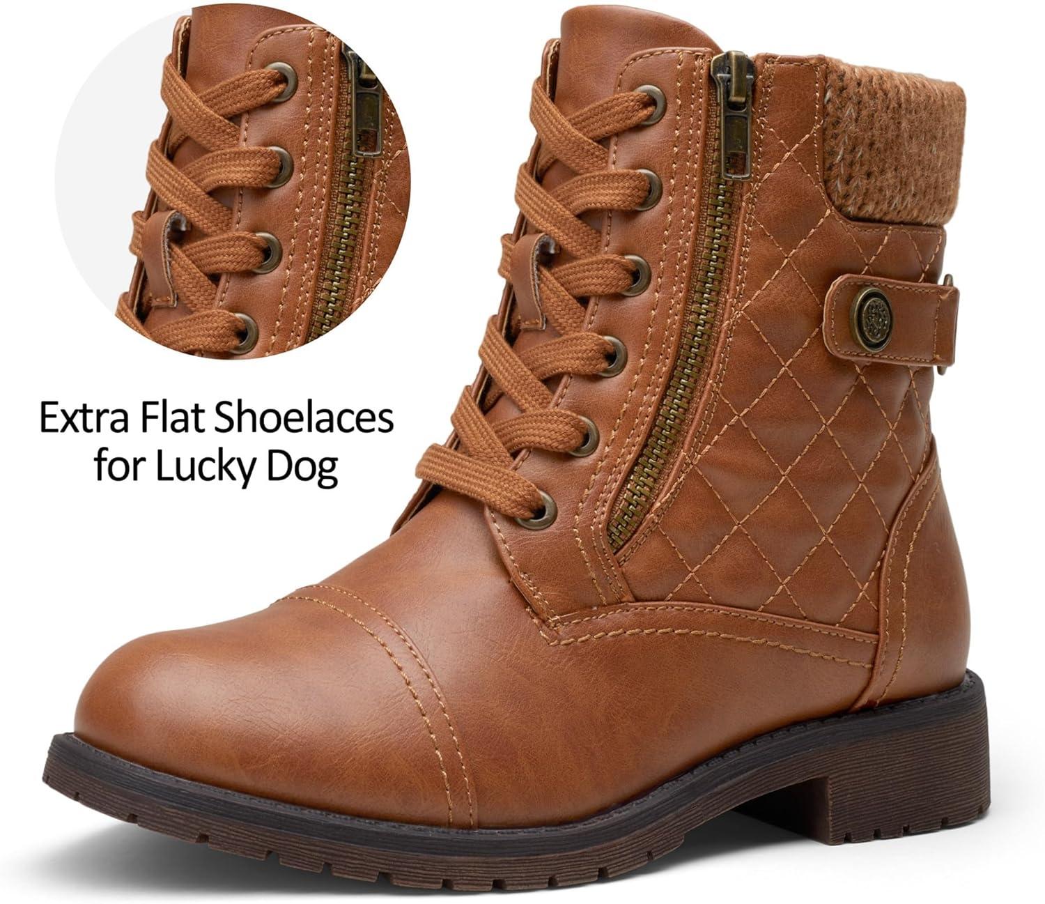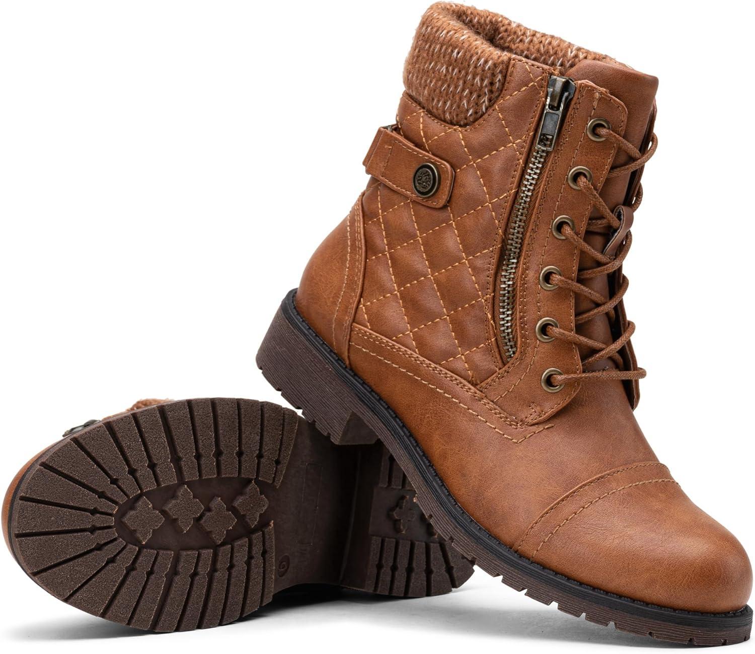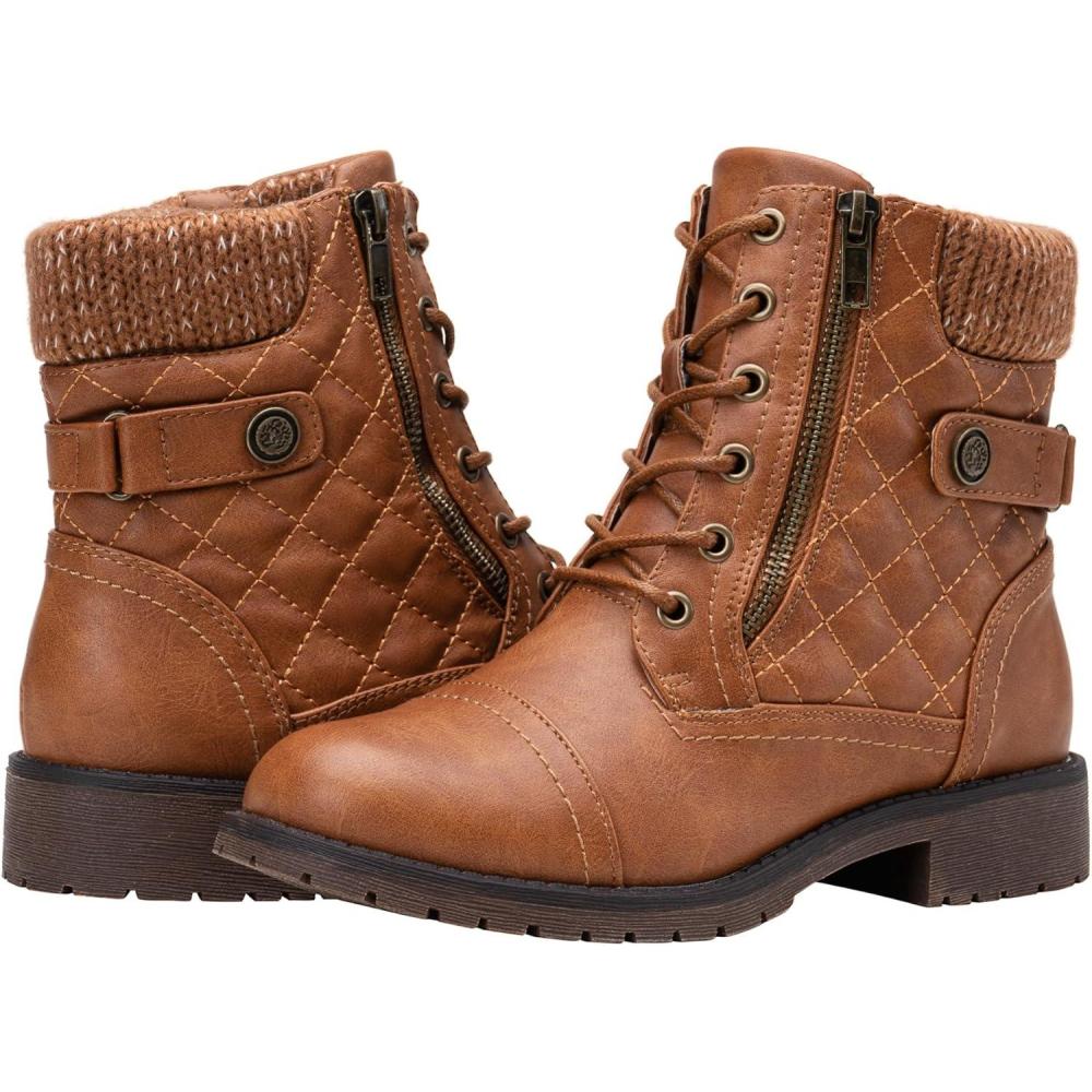 imageVepose Womens Combat Ankle Boots Lace up Comfortable Booties Low HeelCognac Knitting927