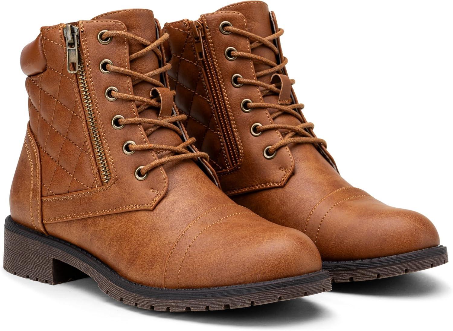 imageVepose Womens Combat Ankle Boots Lace up Comfortable Booties Low HeelYellow Brown Pocket903