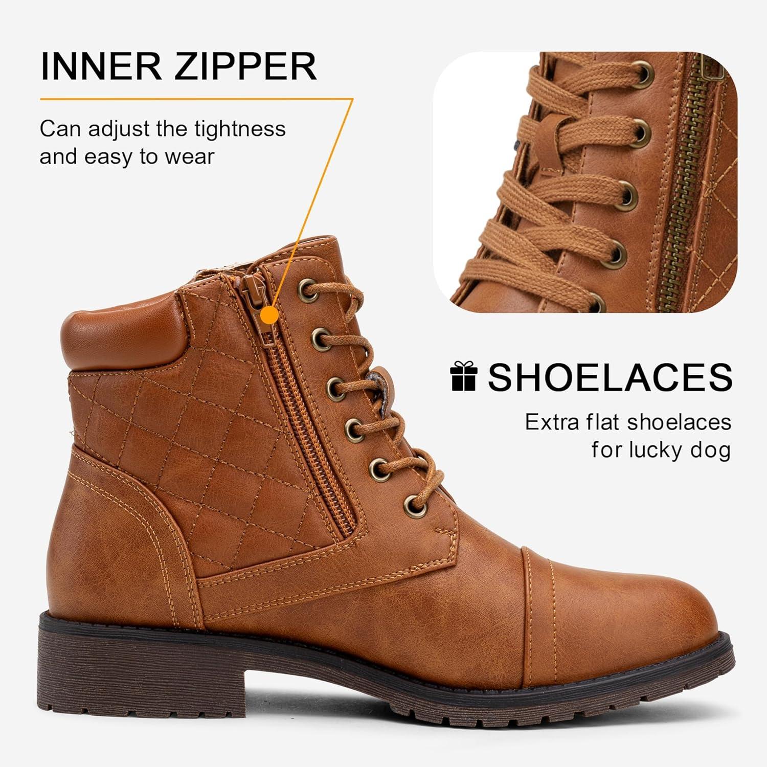 Vepose Women’s Combat Ankle Boots, Lace up Comfortable Booties Low Heel(Yellow Brown Pocket-903)