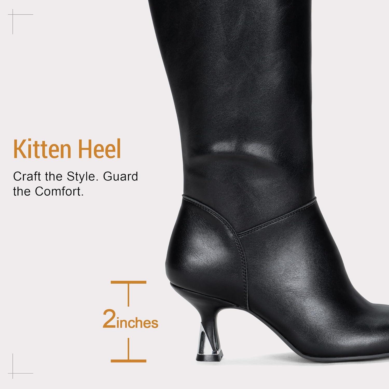 imageVepose Knee High Boots for Women with Kitten Low Heel Tall Fashion Square Toe Long Dressy Boots Casual Comfort Botas Trendy para MujerBlack9528kitten