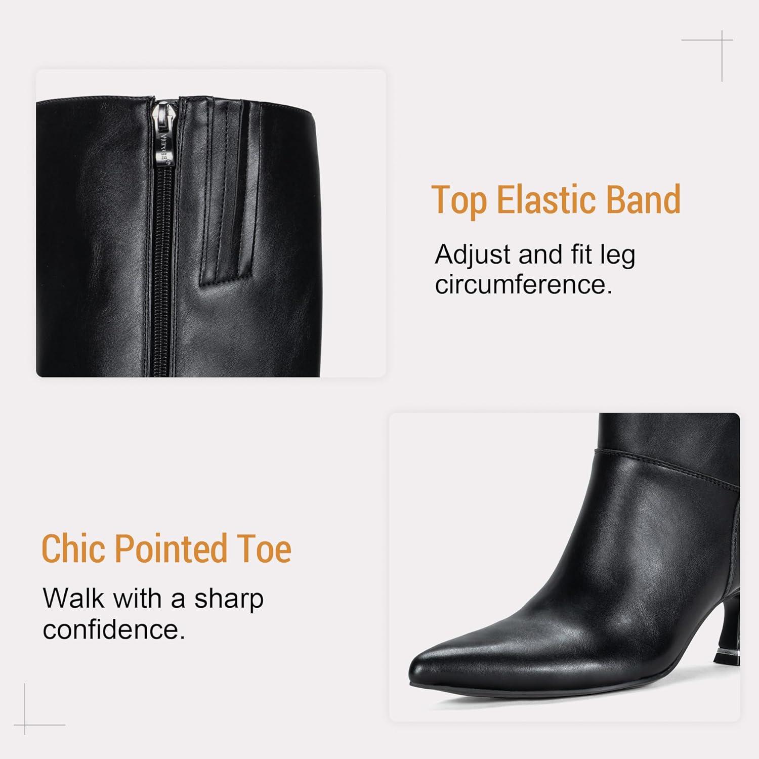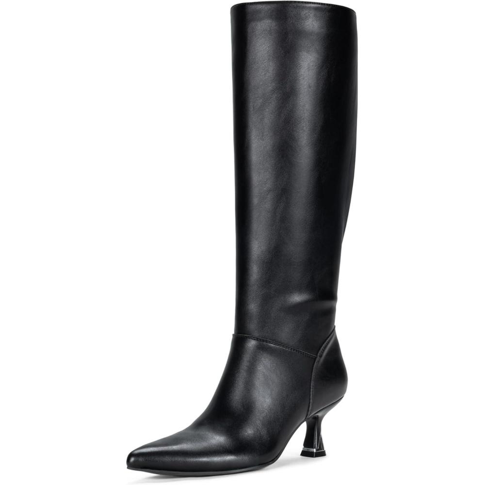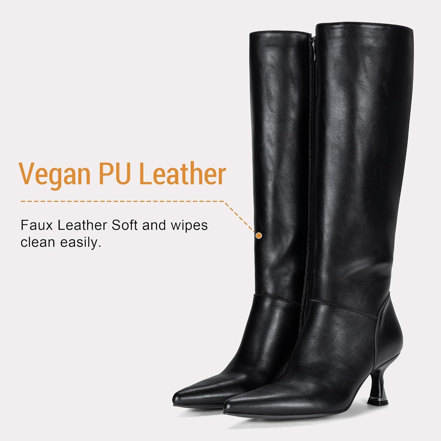 imageVepose Womens Knee High Tall Faux Leather Boots Pointed Toe Kitten Heeled Dress Ladies Fashion Riding 9525 Boots with Side Zipper Elegantes Casual Comfort Botas Trendy para MujerBlack