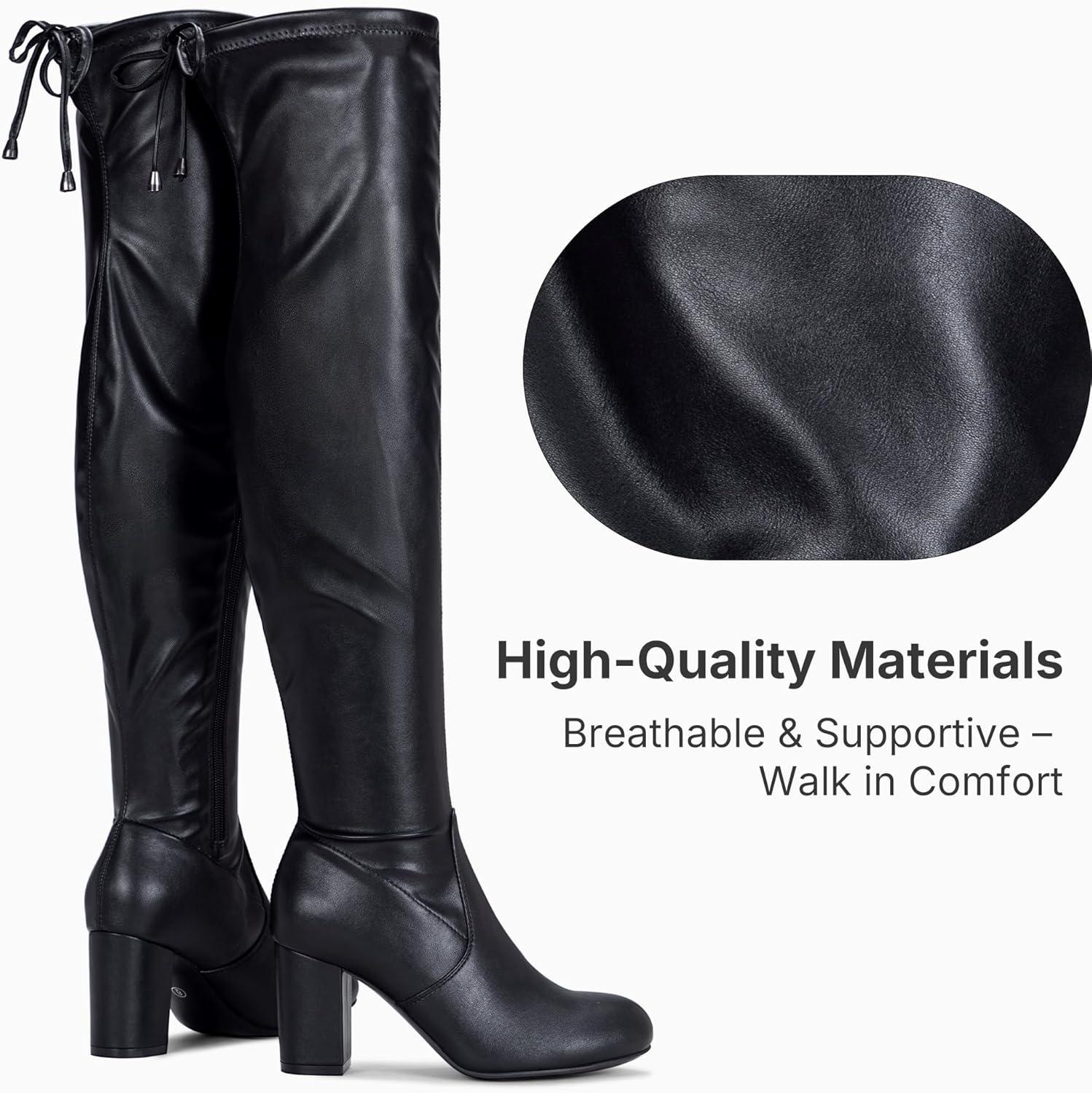 Don’t miss out on our limited-time offer: get a free {accessory} with your purchase of Vepose Women’s Over The Knee High Boots Suede Thigh High Boot 3 Inch Chunky Heels Zipper Adjustable Opening Shoes(Black Pu).