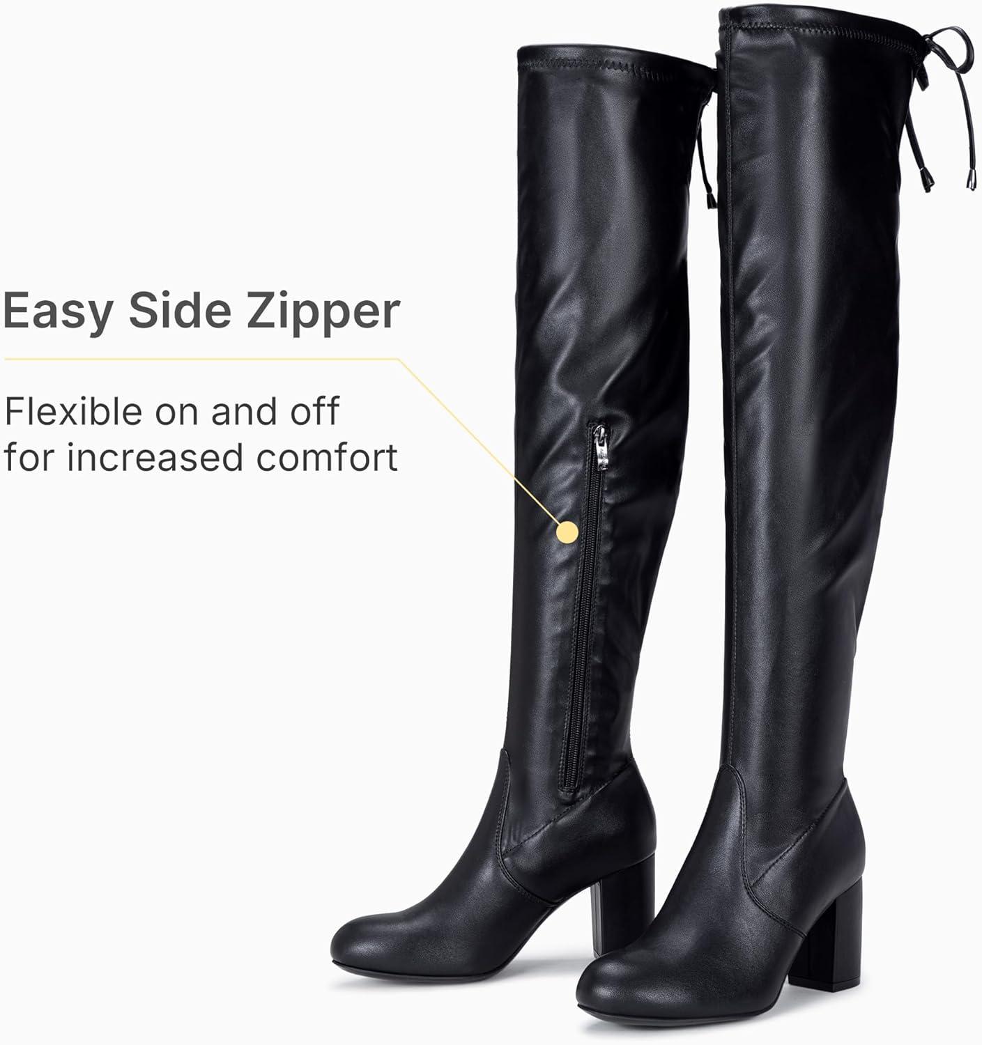 imageVepose Womens Over The Knee High Boots Suede Thigh High Boot 3 Inch Chunky Heels Zipper Adjustable Opening ShoesBlack Pu