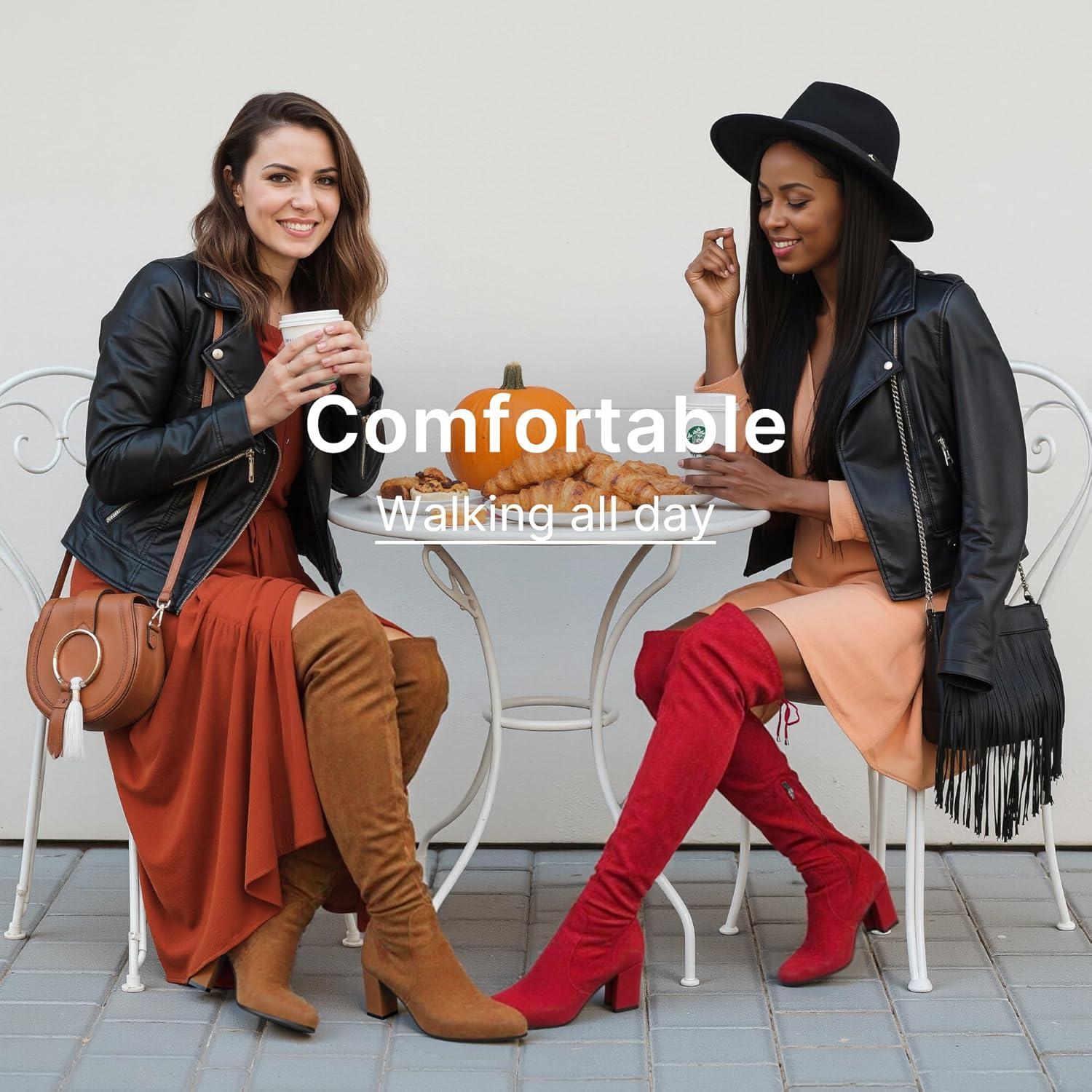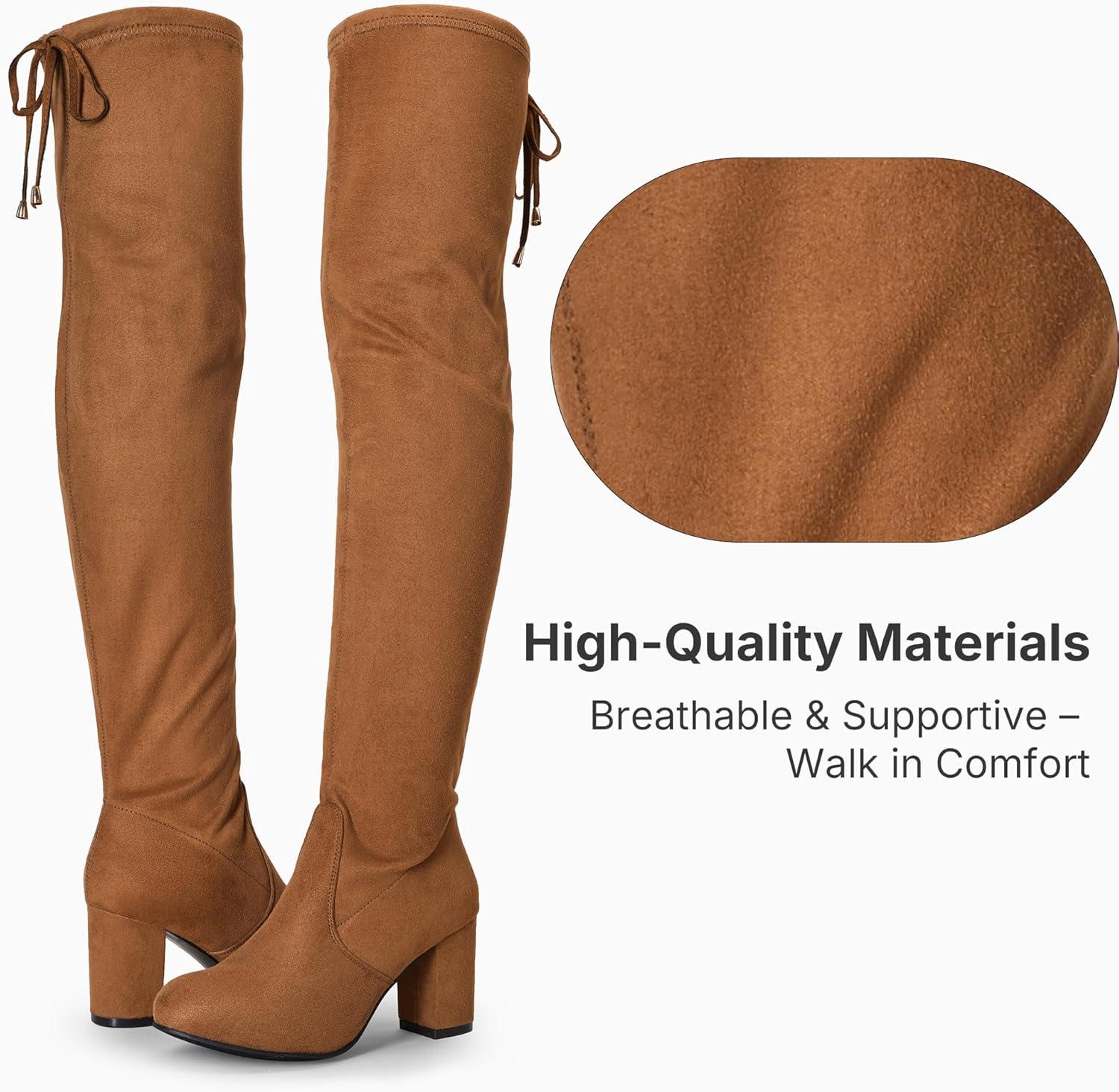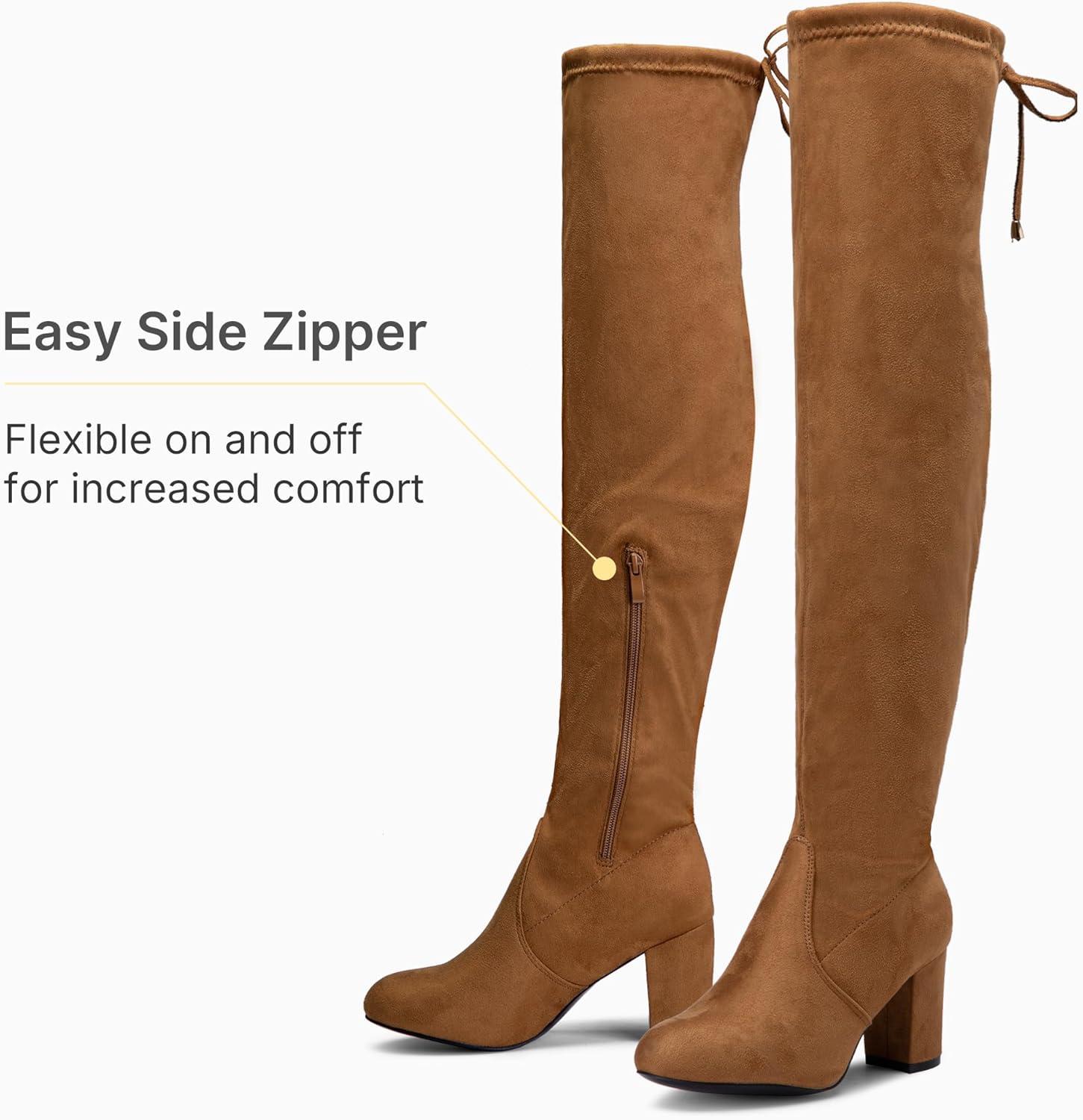 imageVepose Womens Over The Knee High Boots Suede Thigh High Boot 3 Inch Chunky Heels Zipper Adjustable Opening ShoesCamel