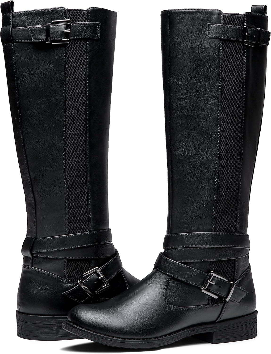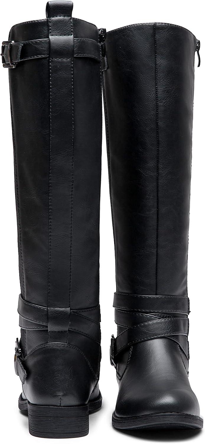 Vepose Women’s Riding Knee High Boots Calf Tall Stretch Retro Low Heel 952 Boots with Zipper(Black-riding 952)