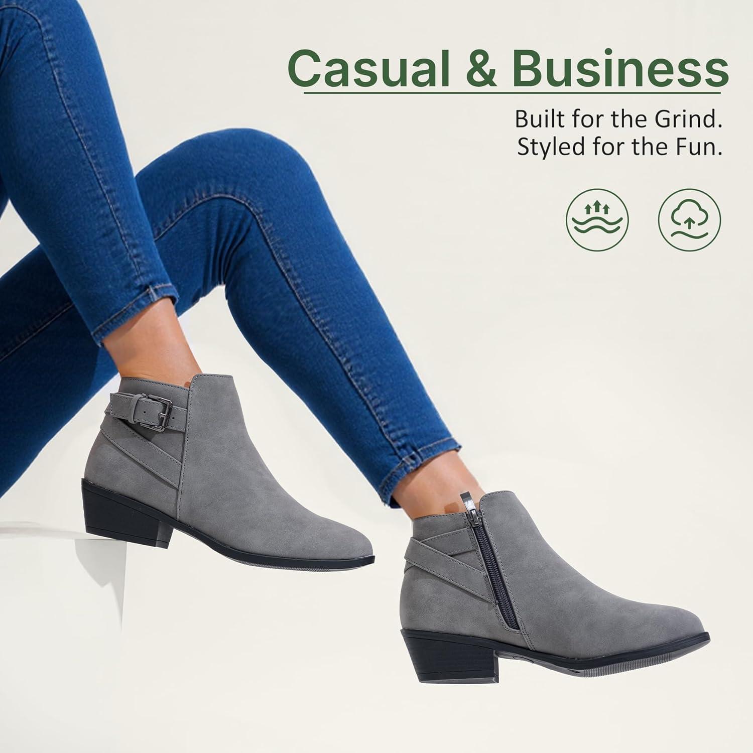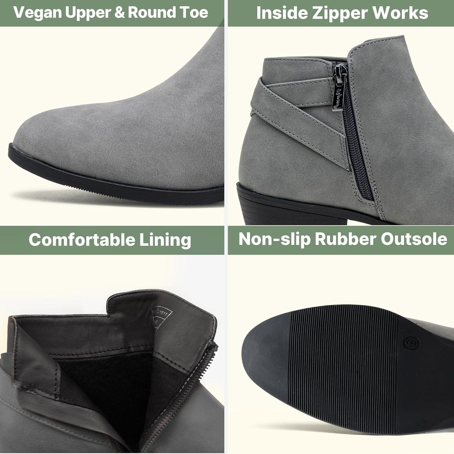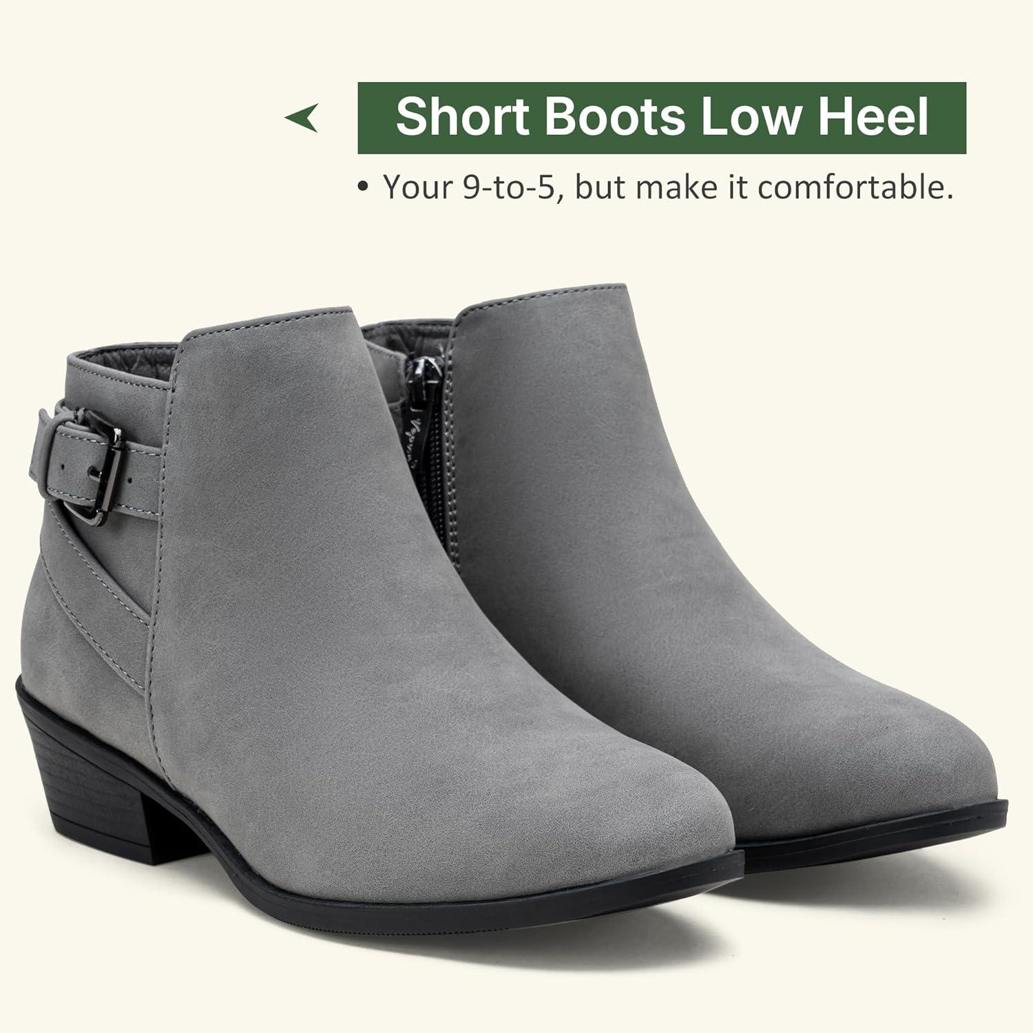 Vepose Women’s Short Ankle Boots Low Heel, Western Cutout Perforated Booties(Elegant-911-grey)