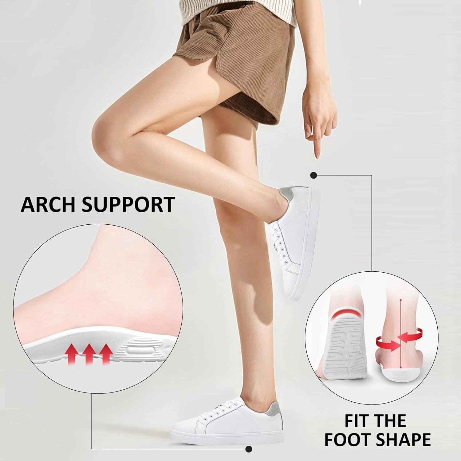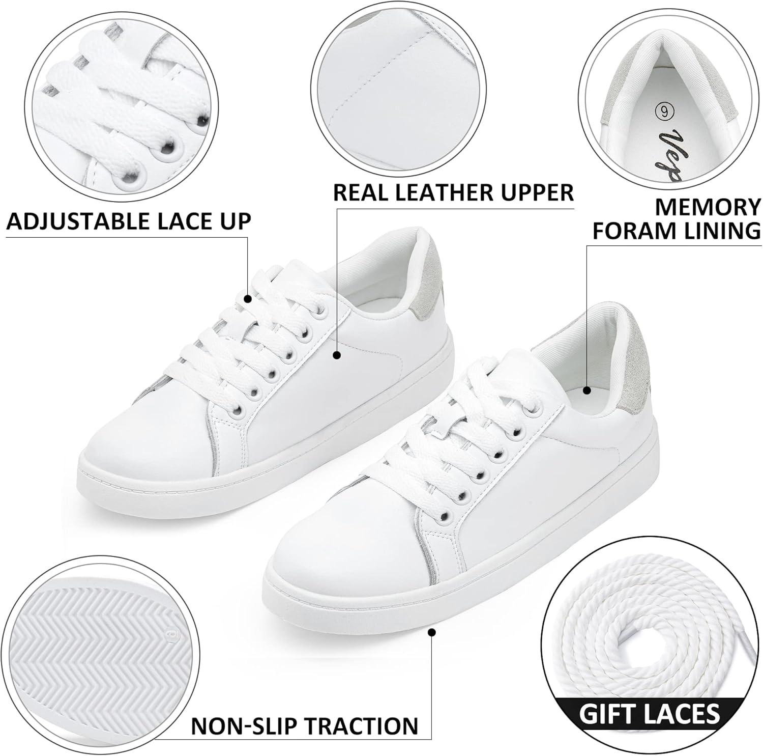 imageVepose Womens Walking Casual Sneakers Dressy Arch Support Comfortable Low Top Tennis Lace Up 8003 ShoesBwhite Grey8003 Leather
