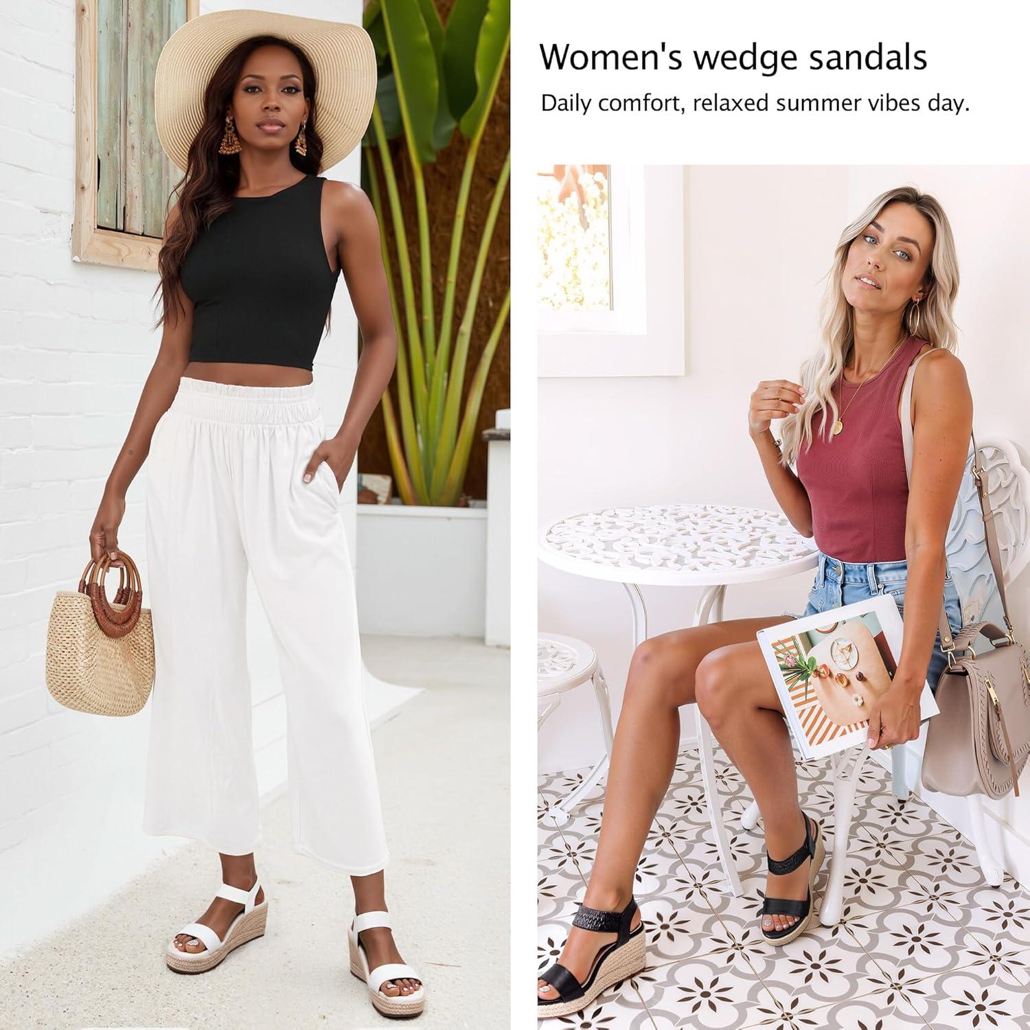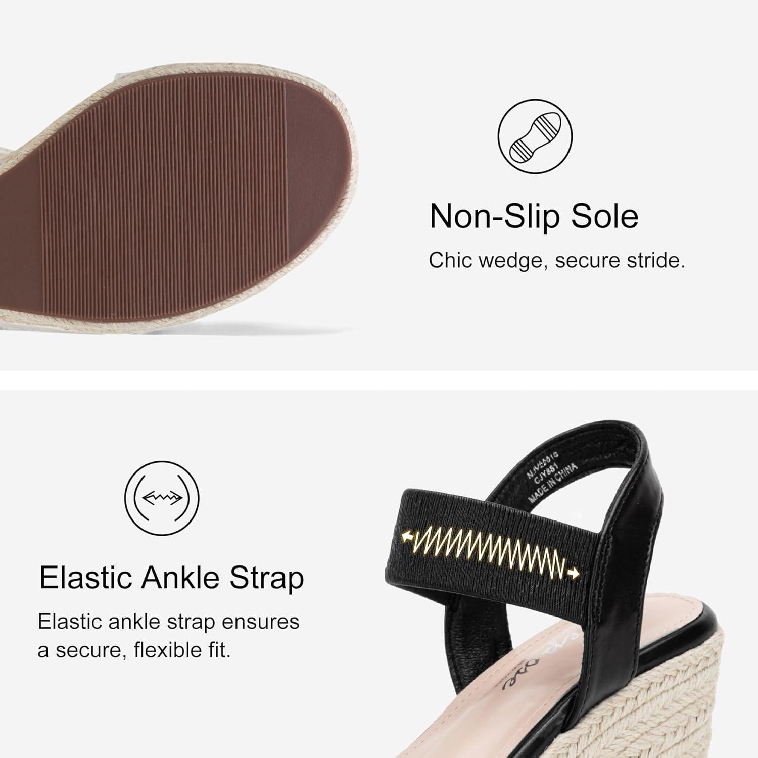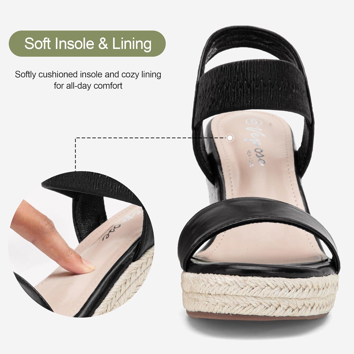Vepose Women’s Wedge Sandals Platform Espadrilles Sandals Elasitc Ankle Strap Open Toe 881 Sandals with 3.5″ Inchs High Heel Summer Shoes(Blackpu)