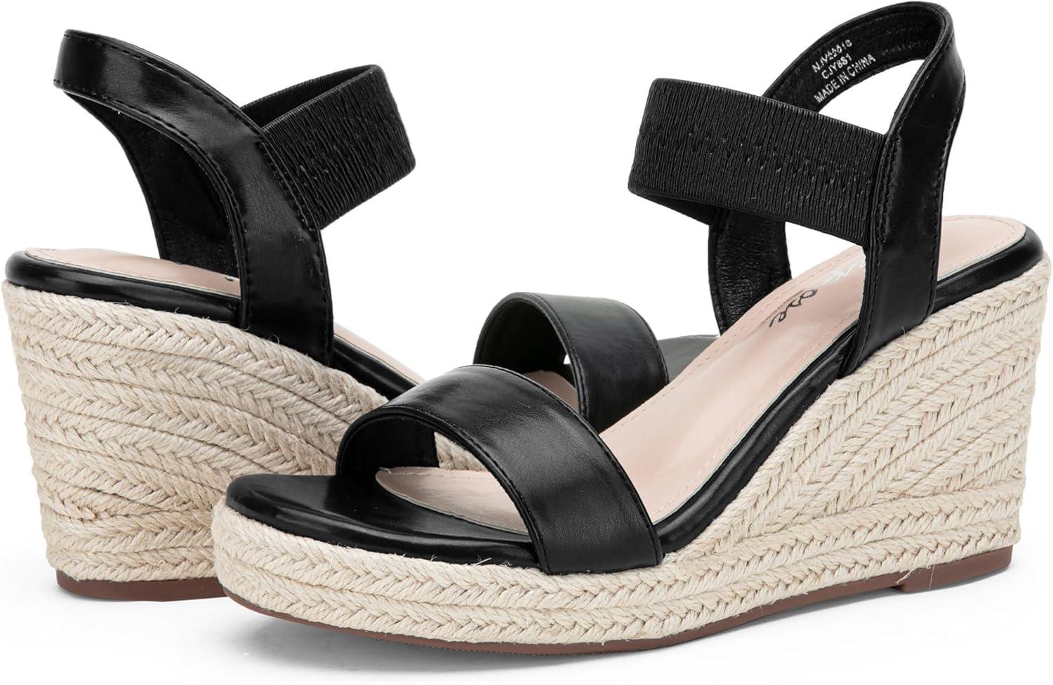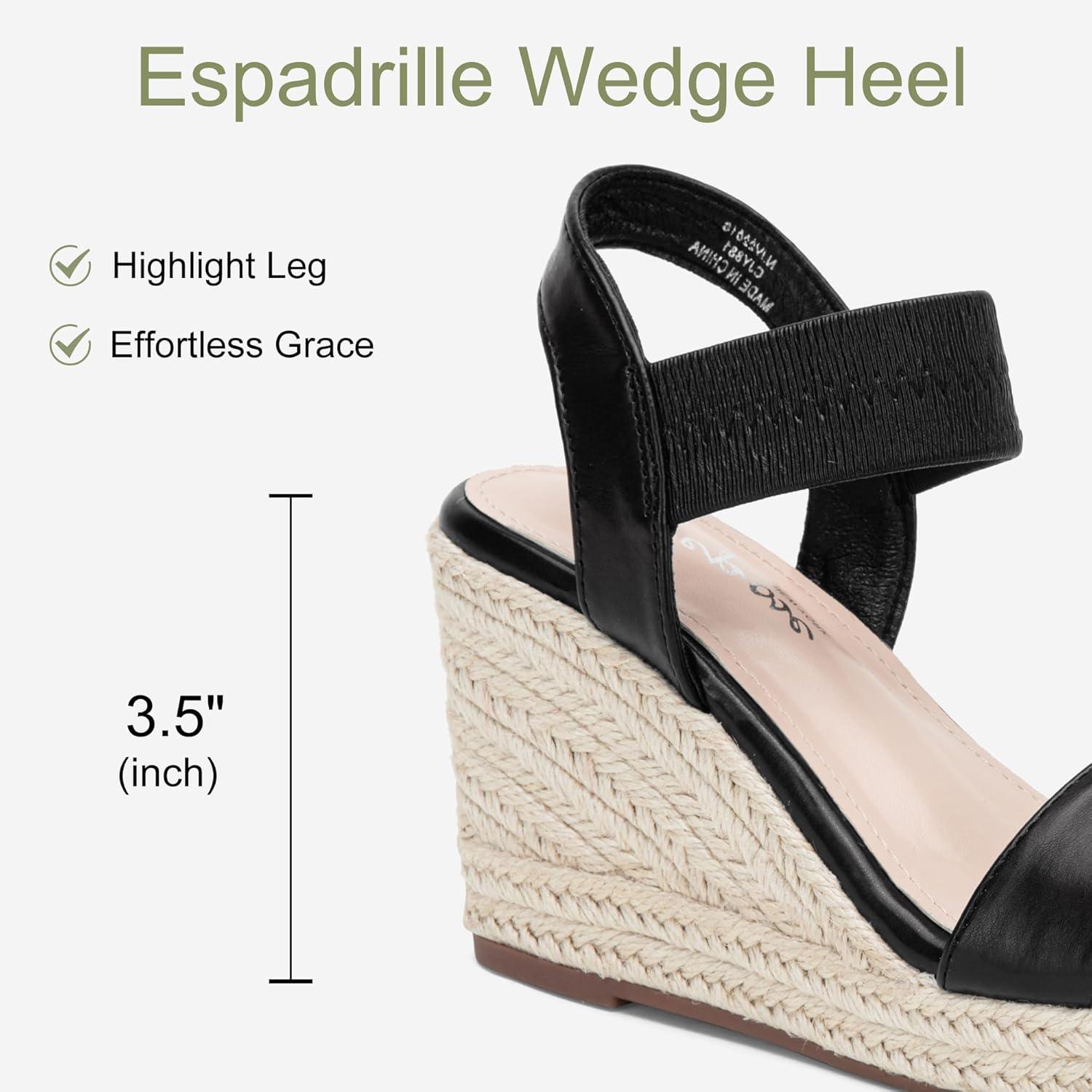 Vepose Women's Wedge Sandals Platform Espadrilles Sandals Elasitc Ankle Strap Open Toe 881 Sandals with 3.5" Inchs High Heel Summer Shoes(Blackpu)